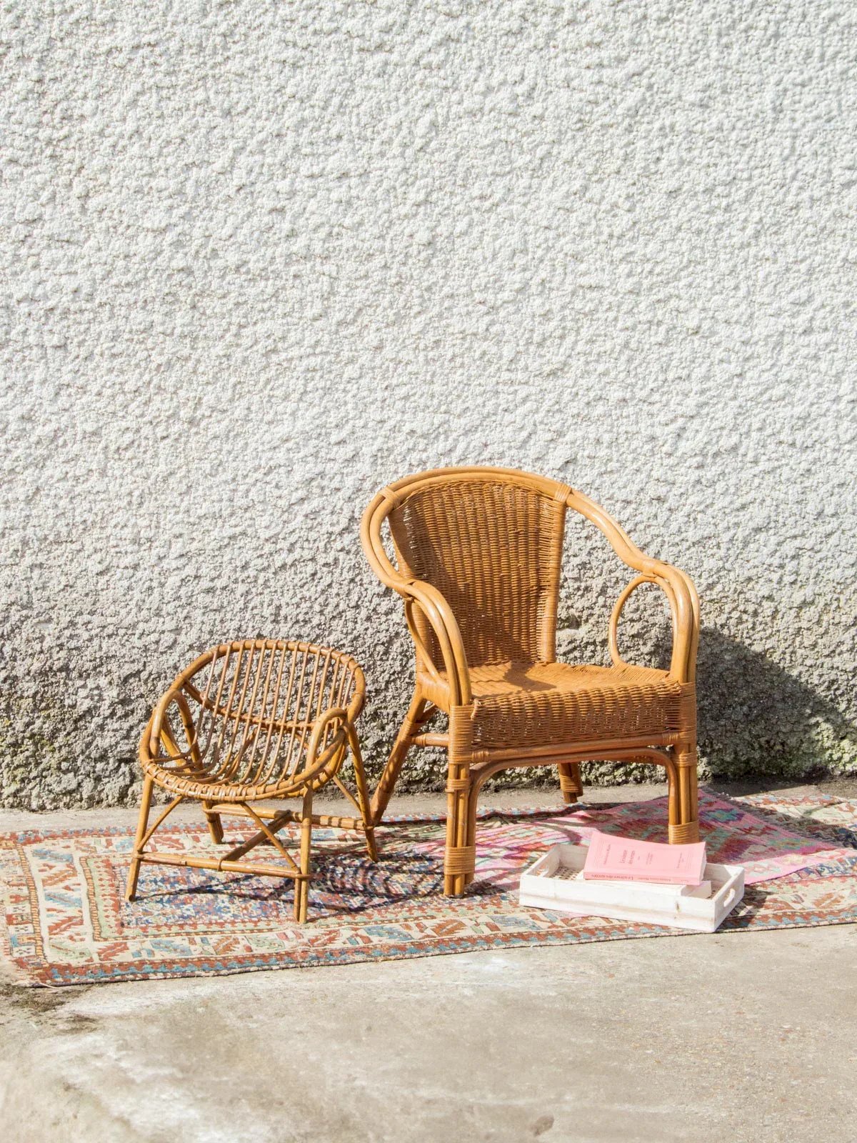 Discover this small children's rattan armchair, perfect for adding a bohemian touch to your little one's room. Its lightweight and natural structure offers both comfort and sturdiness, while its elegant design easily blends into any type of décor. Ideal for reading or playtime, this armchair is a must-have for creating a cozy space suitable for toddlers. Easy to move, it accompanies your child on all their adventures! Length: 41 cm Width: 41 cm Height: 46 cm Seat height: 26 cm Condition: Used item with some superficial signs of wear, fully operational and functioning correctly. It may be a demonstration model or an item returned to the store after a short period of use, including any potential imperfections. Color: Multicolor Height: Rattan Width: Armchairs and lounge chairs Brand: Debongout Type: Vintage product Material: Rattan Style: Country