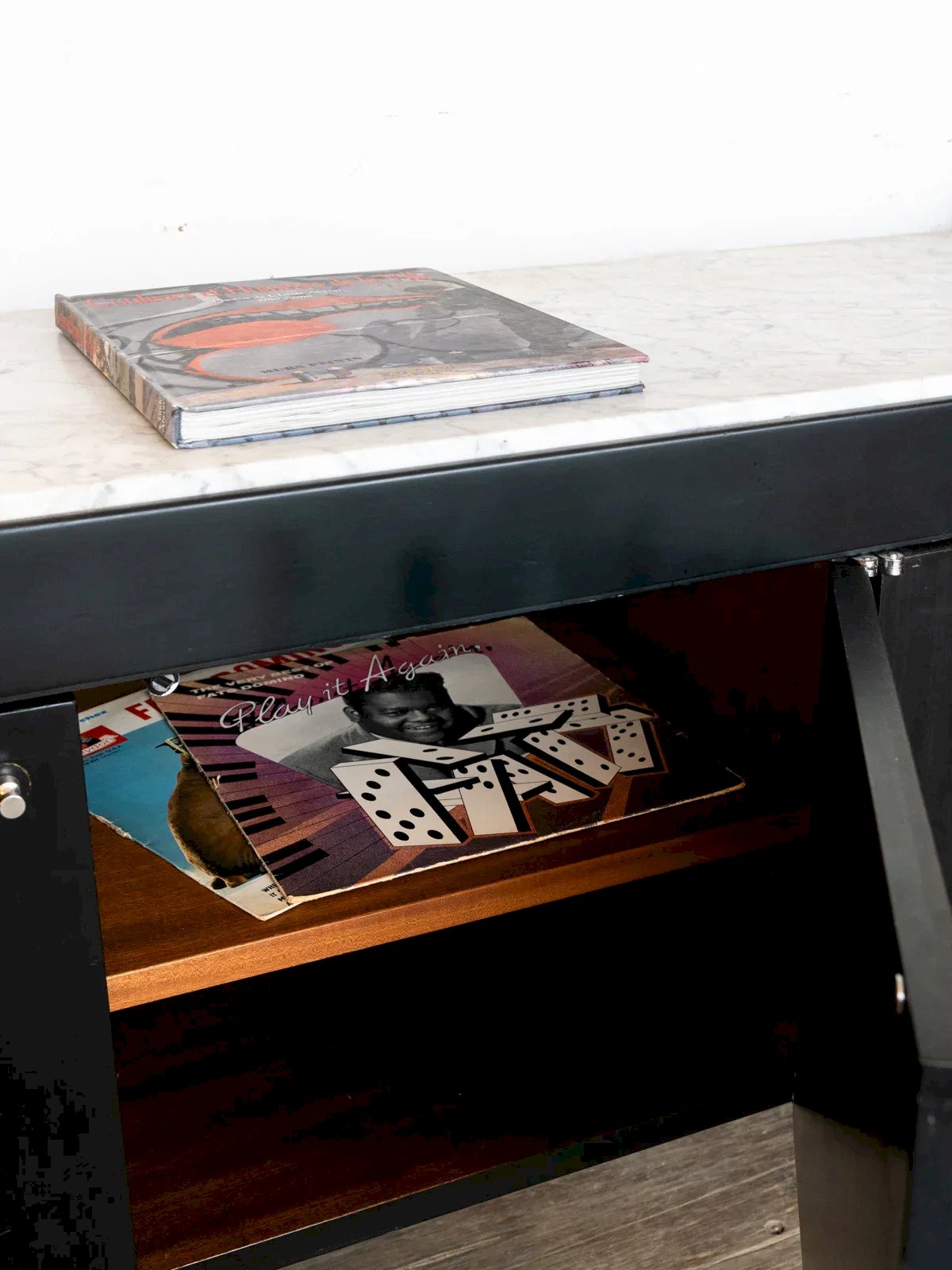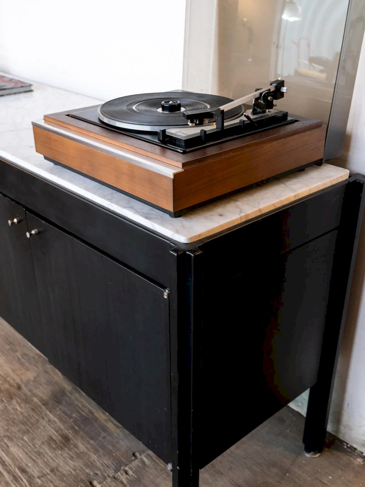 Exceptional 1980s sideboard, combining timeless elegance and functionality. Made of blackened wood, it captivates with its clean lines and strong character. Its marble top adds a touch of refinement, ideal for enhancing your living room or dining area. Featuring four doors, it offers generous storage space to organize dishware, books, or decorative items. Perfect for a chic vintage ambiance, this unique piece fits well in both modern and retro decor. Make this sideboard the charm of your home. Web exclusive, the meeting will take place at your home! Length: 195.5 cm Width: 50.5 cm Height: 76 cm Condition: Used: An item that has been used. Item showing some superficial signs of wear... Used: An item that has been used. Item showing some superficial signs of wear, fully operational and functioning correctly. It may be a display model or an item returned to the store after a short period of use. any imperfections. Brand: Debongout Type: Vintage Product Material: Wood, Marble Style: Contemporary Customized: Sideboards