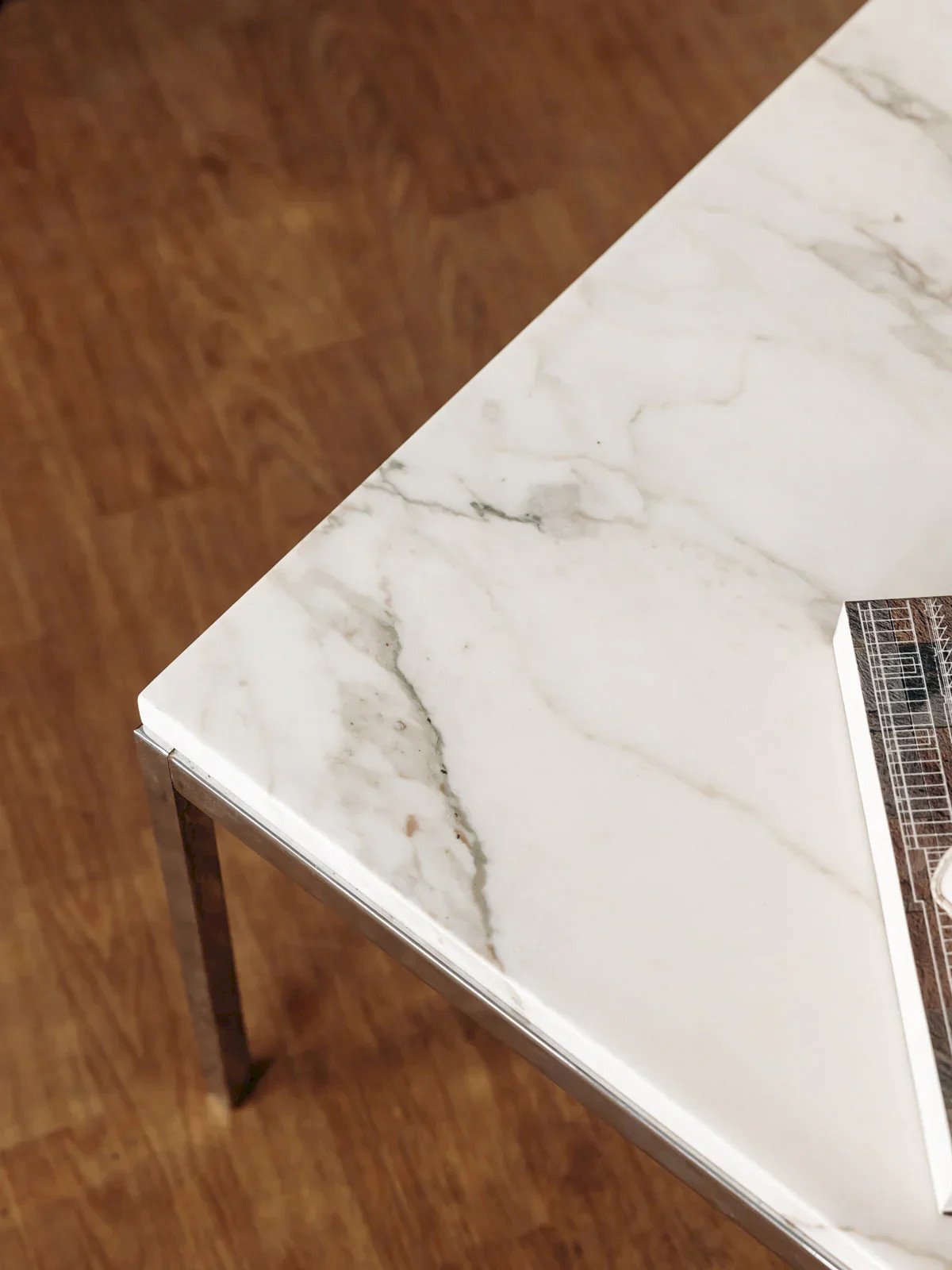 Elevate your living room with this Knoll coffee table made of marble and metal, where the softness of the mineral top meets the finesse of the metal structure for an elegant and controlled balance. Its square top provides a generous surface for books, candles, and cups, while the airy base lightens the whole and facilitates integration into a contemporary space. The combination of noble materials creates a refined and warm atmosphere, ideal for a graphic or more subdued interior. Length: 60 cm Height: 43 cm Depth: 60 cm Condition: Used: Item has been used. Item shows some superficial signs of wear, fully operational and functioning correctly. It may be a demonstration model or a returned item after a short period of use. Possible imperfections. Brand: Debongout Type: Vintage product Material: Marble, Metal Style: Contemporary Custom: Coffee tables