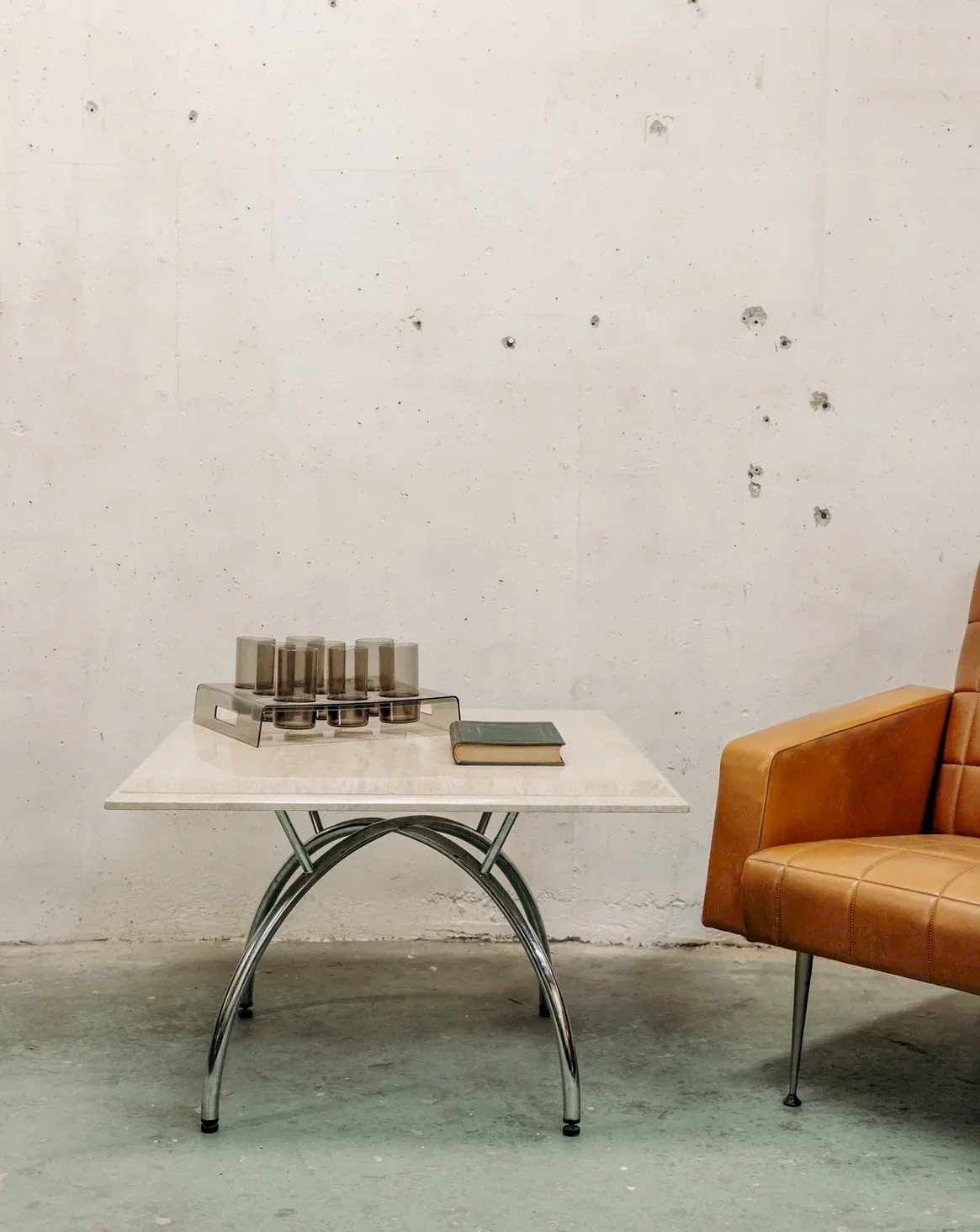 Discover a coffee table that combines elegance and modernity with its square ecru marble top and tubular metal structure. The metal legs ensure stability and visual lightness, highlighting the natural beauty of the marble. Its streamlined design easily integrates into a contemporary living room or a sophisticated interior. Practical and aesthetic, it becomes a focal point in your living space. This coffee table combines refinement, sturdiness, and functionality to enhance your decor. The tabletop is very heavy and rests on the legs. Length: 80 cm Width: 80 cm Height: 52 cm Condition: Used: Item that has been used. Item showing some superficial signs of wear, fully operational and functioning correctly. It may be a display model or an item returned to the store after a short period of use. Any potential imperfections. Brand: Debongout Type: Vintage Product Material: Marble, Metal Style: Contemporary Custom: Coffee Tables