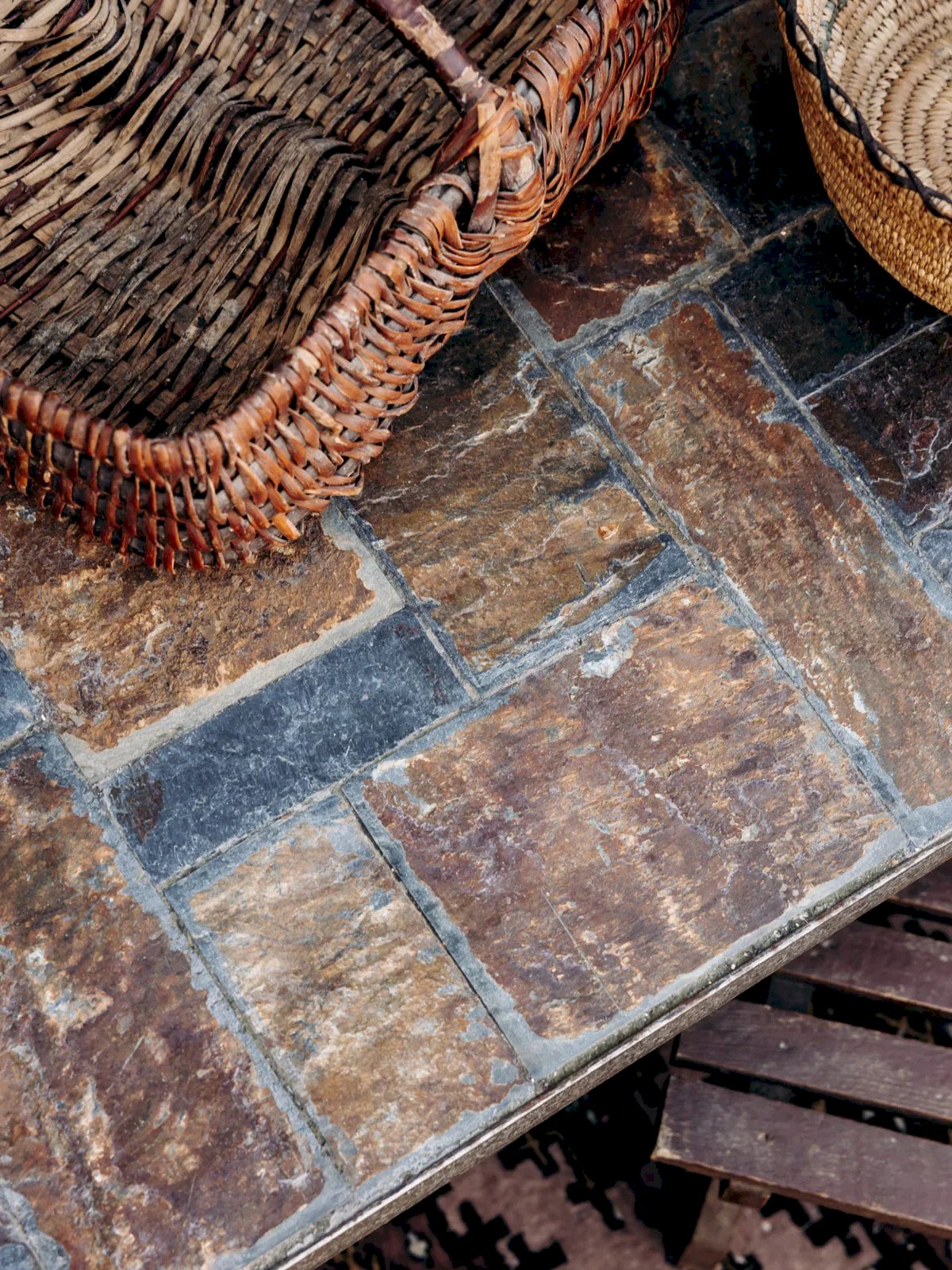 Elevate your coffee corner with this cup table featuring a wrought iron base and a patinated slate top, combining robustness and delicacy. Its compact proportions provide an ideal surface for placing a cup, a book, or a plant, perfect for an intimate living room or an elegant balcony. Its understated and slightly patinated aesthetic creates a warm and authentic atmosphere, for an interior that tells a story. Length: 100 cm Width: 42 cm Height: 40 cm Height under the top: 36.5 cm Condition: Used: Item that has been used. Item showing some superficial signs of wear, ... Used: Item that has been used. Item showing some superficial signs of wear, fully operational and functioning correctly. It may be a demonstration model or an item returned to the store after a short period of use. any imperfections. Brand: Debongout Type: Vintage product Material: Iron, Stone Style: Contemporary Custom: Coffee tables