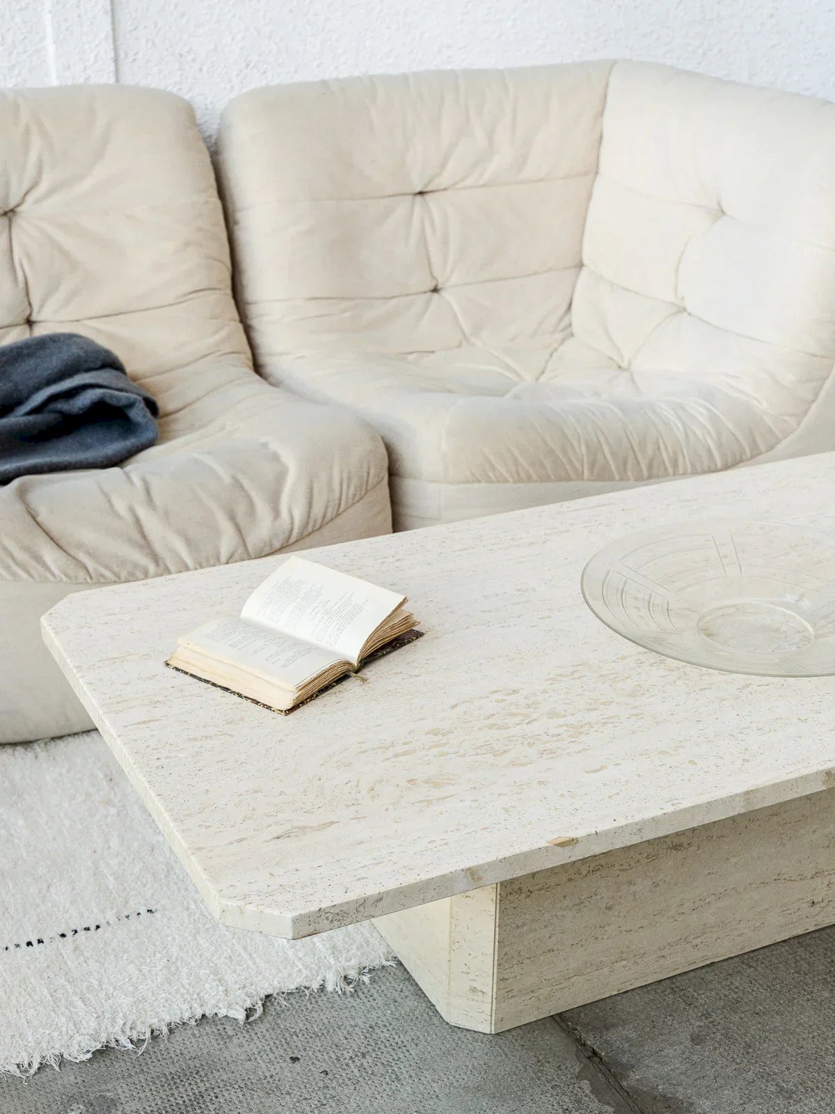 Discover the travertine table, a centerpiece that combines elegance and authenticity. Its natural surface and carefully crafted finish bring a touch of sophistication to your interior. Perfect for family meals or evenings with friends, this robust and aesthetic table will fit seamlessly into any decor style. Enjoy convivial moments around this timeless piece of furniture. Signs of wear and existing imperfections. Length: 130 cm Width: 70 cm Height: 38 cm Condition: Used: Item has been used. Item shows some superficial wear marks, fully operational and functioning correctly. It may be a demonstration model or an item returned to the store after a short period of use. Possible imperfections. Brand: Debongout Type: Thrifted Product Material: Travertine Style: Contemporary Custom: Coffee tables