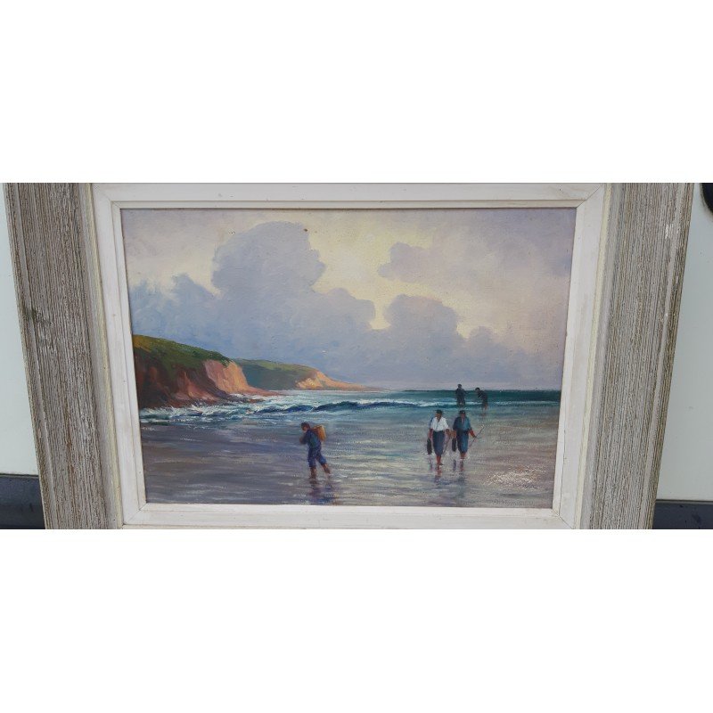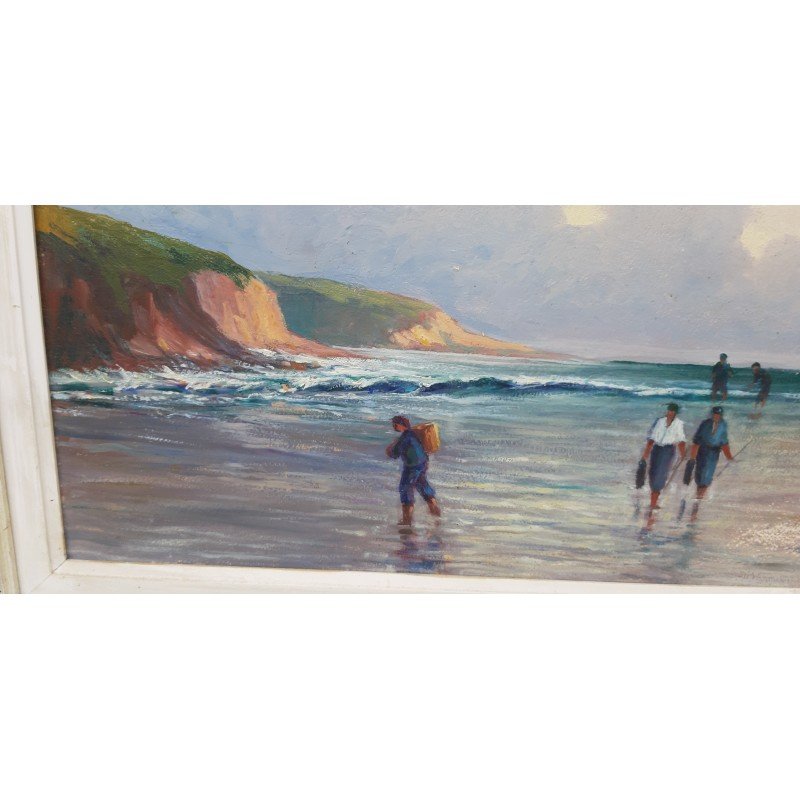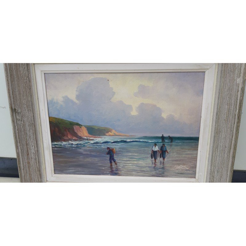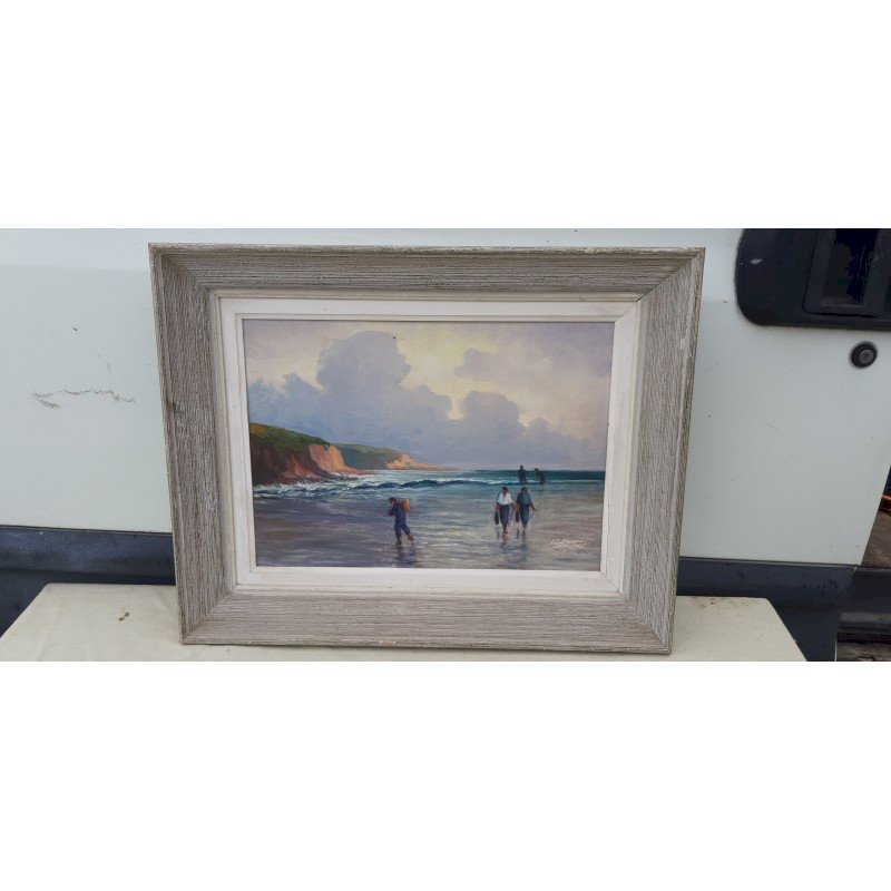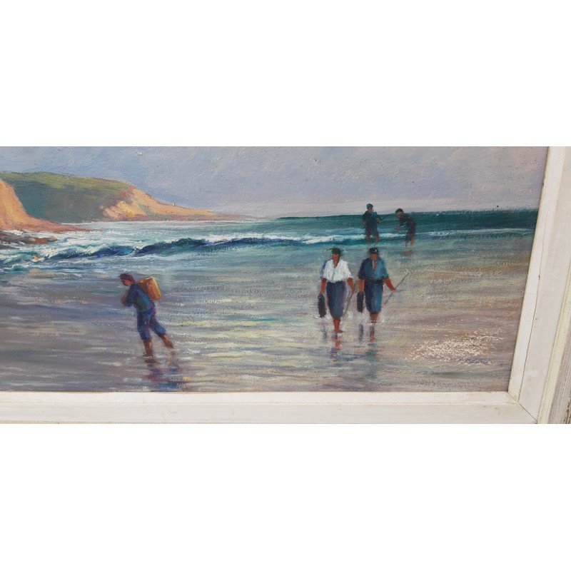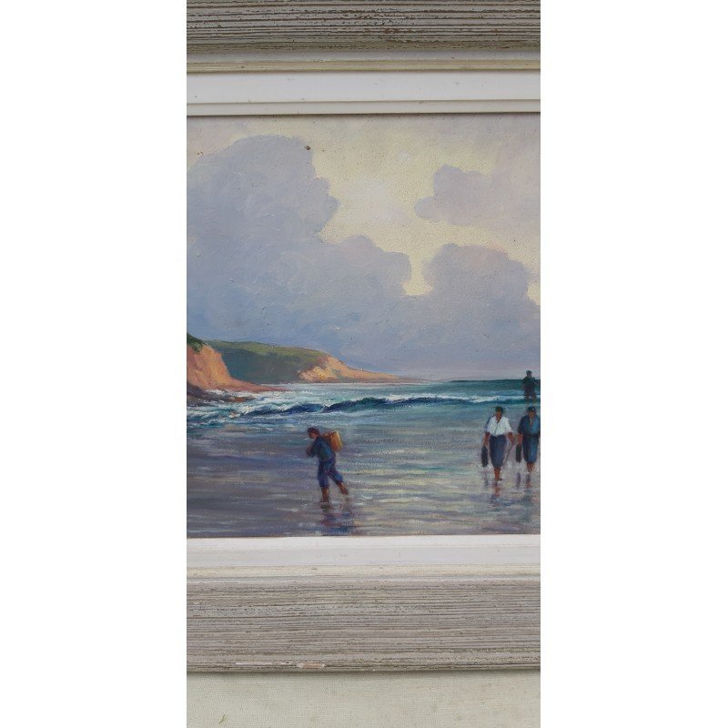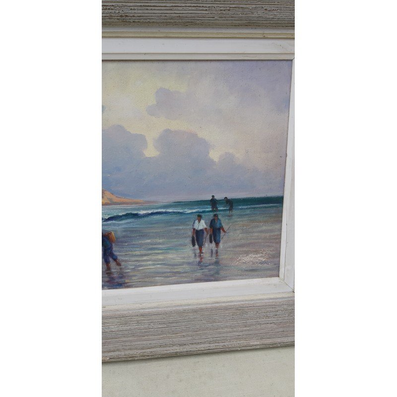 Marine on Panel signed Jaudeau, "Fishermen on Foot" dimensions: 60 cm by 48 cm, very good condition