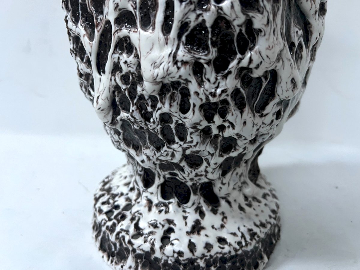 Marius Giuge (1909-1980) Vallauris - Pedestal vase with lava decoration 20th century Signed under the foot see the photo Good condition Dimension H 36 x W24 x 24 cm 20th century Country of origin: France