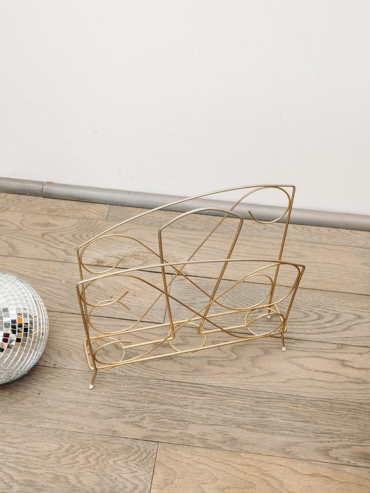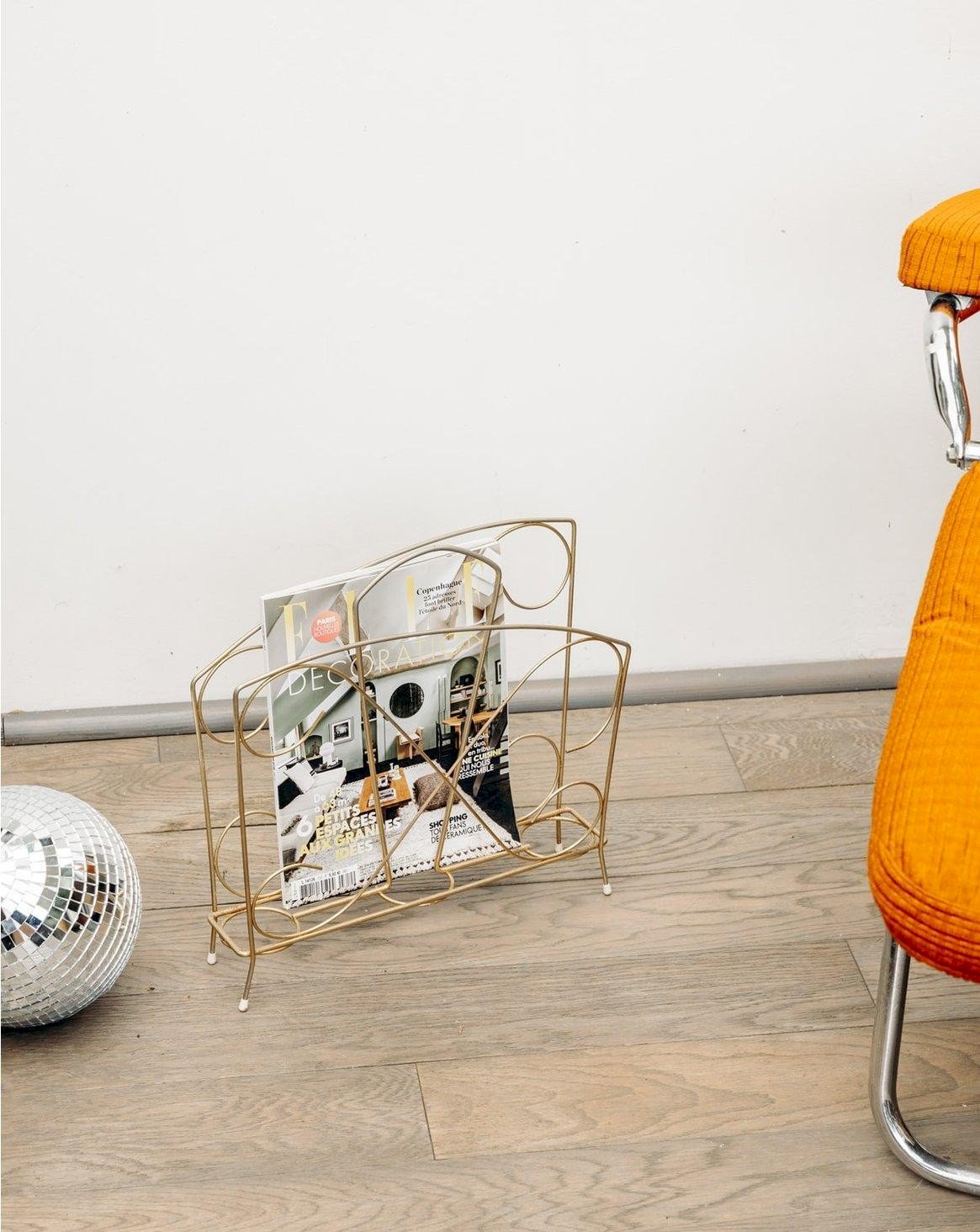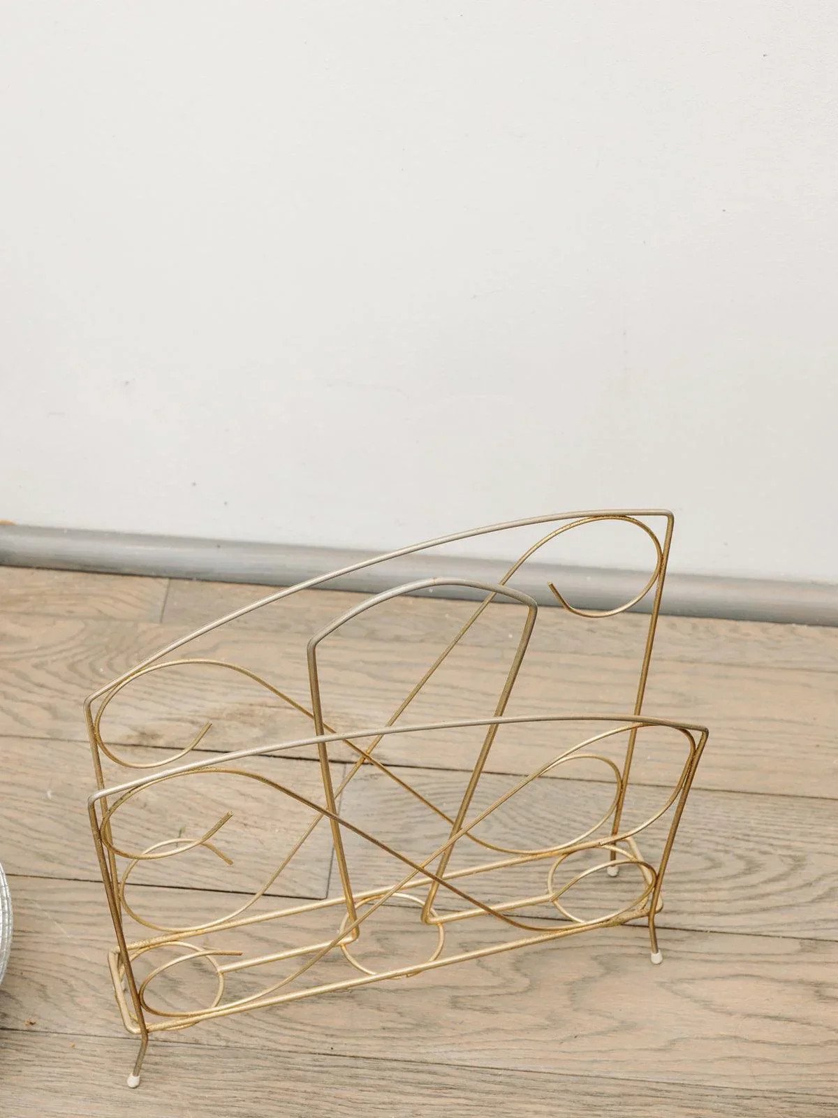 The quintessential sixties accessory, it is! This golden metal magazine holder caught our eye for the delicacy of its lines. Perfect for organizing and displaying your favorite books and magazines in the living room or bedroom, it stands out with its vintage lines and natural elegance. A unique piece that will add an authentic retro touch to your interior, ideal next to an armchair or sofa. Unfortunately, this product is not visible in stores. Length: 37 cm Height: 34 cm Depth: 14 cm A brief history of the magazine holder The term "magazine holder" emerged in the early 20th century, when newspapers and magazines became commonplace in households. This piece of furniture, often made of wood or metal, is designed to organize and display printed publications. Initially found in living rooms and waiting rooms, it embodies order and access to culture. Today, the magazine holder adapts to all interior styles, offering a practical decorative touch. Condition: Used: Item that has been used. Item showing some superficial wear, ... Used: Item that has been used. Item showing some superficial wear, fully operational and functioning correctly. It may be a demonstration model or an item returned to the store after a short period of use. any possible imperfections. Brand: Debongout Type: Vintage product Material: Metal Style: Contemporary