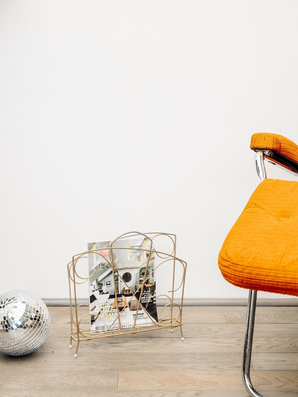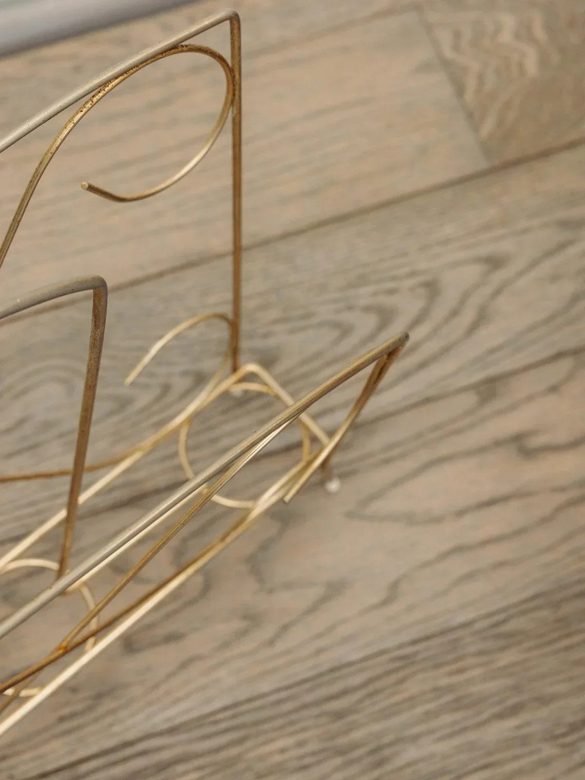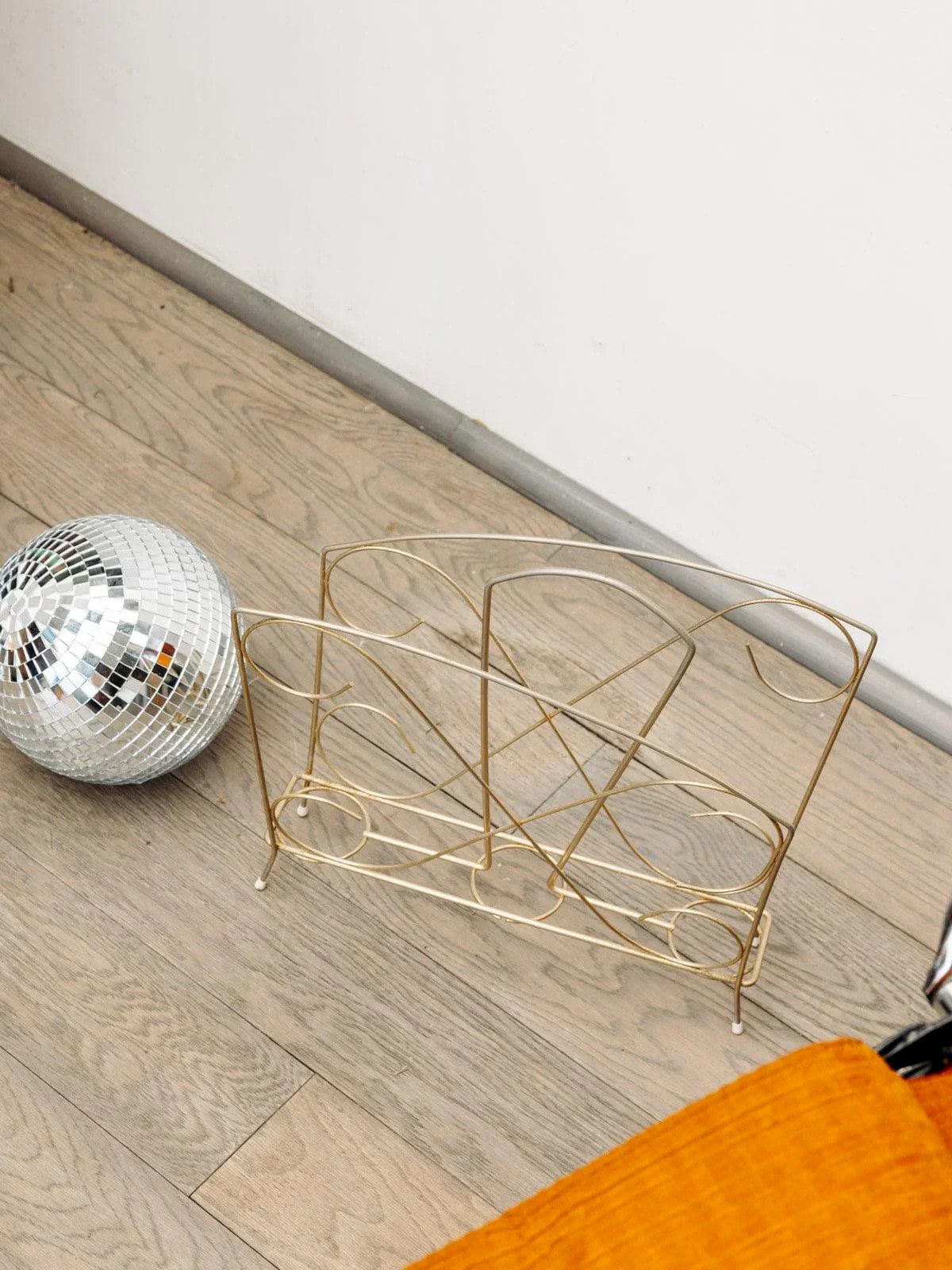 The quintessential sixties accessory, it is! This golden metal magazine holder caught our eye for the delicacy of its lines. Perfect for organizing and displaying your favorite books and magazines in the living room or bedroom, it stands out with its vintage lines and natural elegance. A unique piece that will add an authentic retro touch to your interior, ideal next to an armchair or sofa. Unfortunately, this product is not visible in stores. Length: 37 cm Height: 34 cm Depth: 14 cm A brief history of the magazine holder The term "magazine holder" emerged in the early 20th century, when newspapers and magazines became commonplace in households. This piece of furniture, often made of wood or metal, is designed to organize and display printed publications. Initially found in living rooms and waiting rooms, it embodies order and access to culture. Today, the magazine holder adapts to all interior styles, offering a practical decorative touch. Condition: Used: Item that has been used. Item showing some superficial wear, ... Used: Item that has been used. Item showing some superficial wear, fully operational and functioning correctly. It may be a demonstration model or an item returned to the store after a short period of use. any possible imperfections. Brand: Debongout Type: Vintage product Material: Metal Style: Contemporary