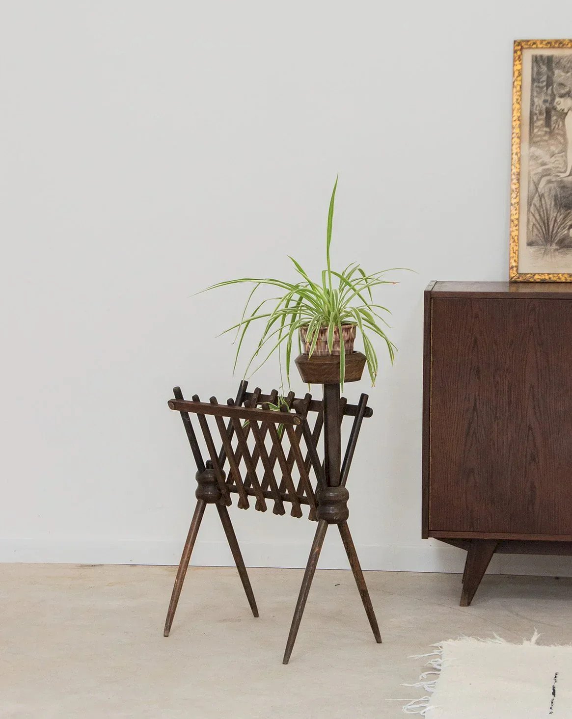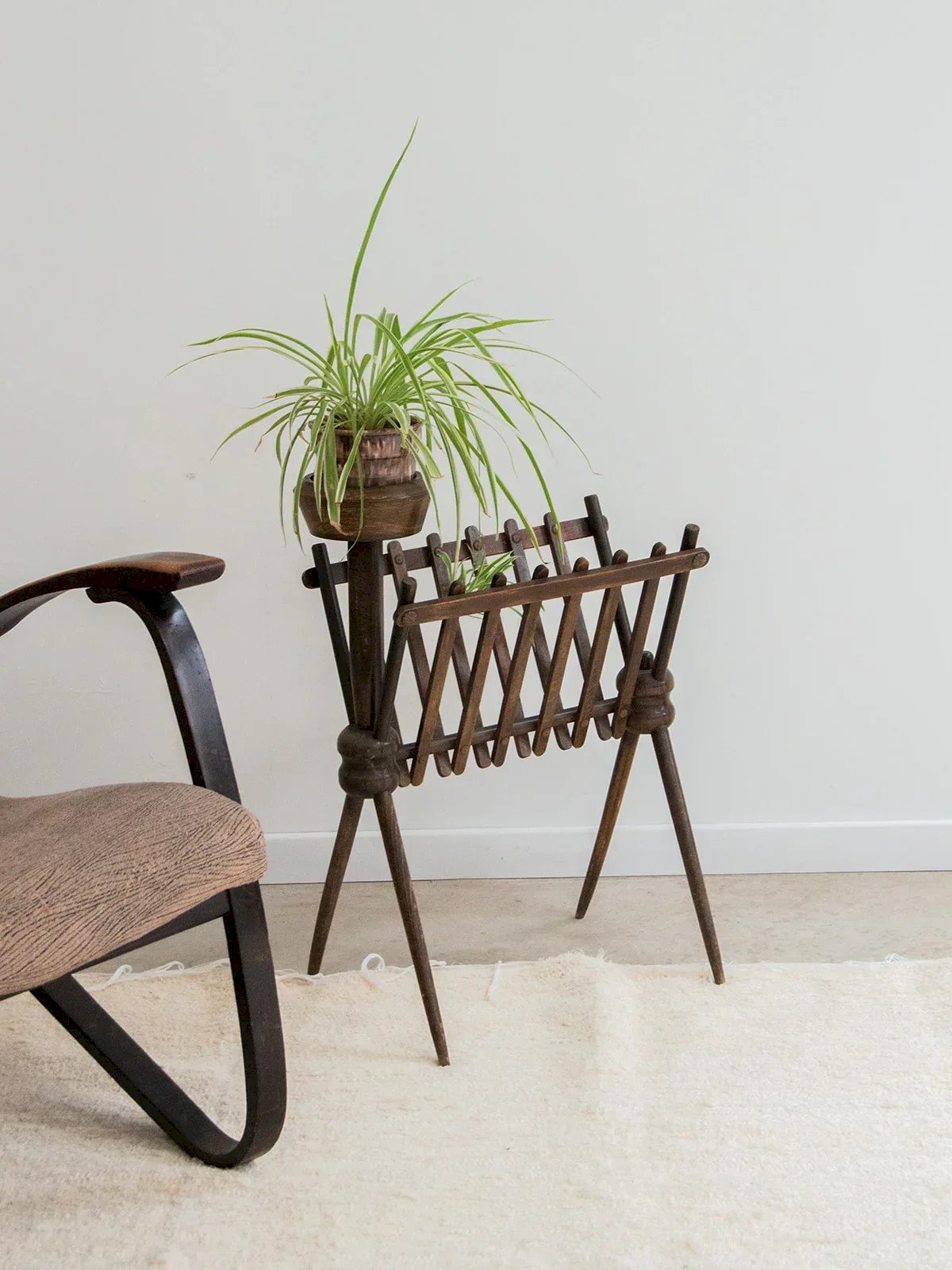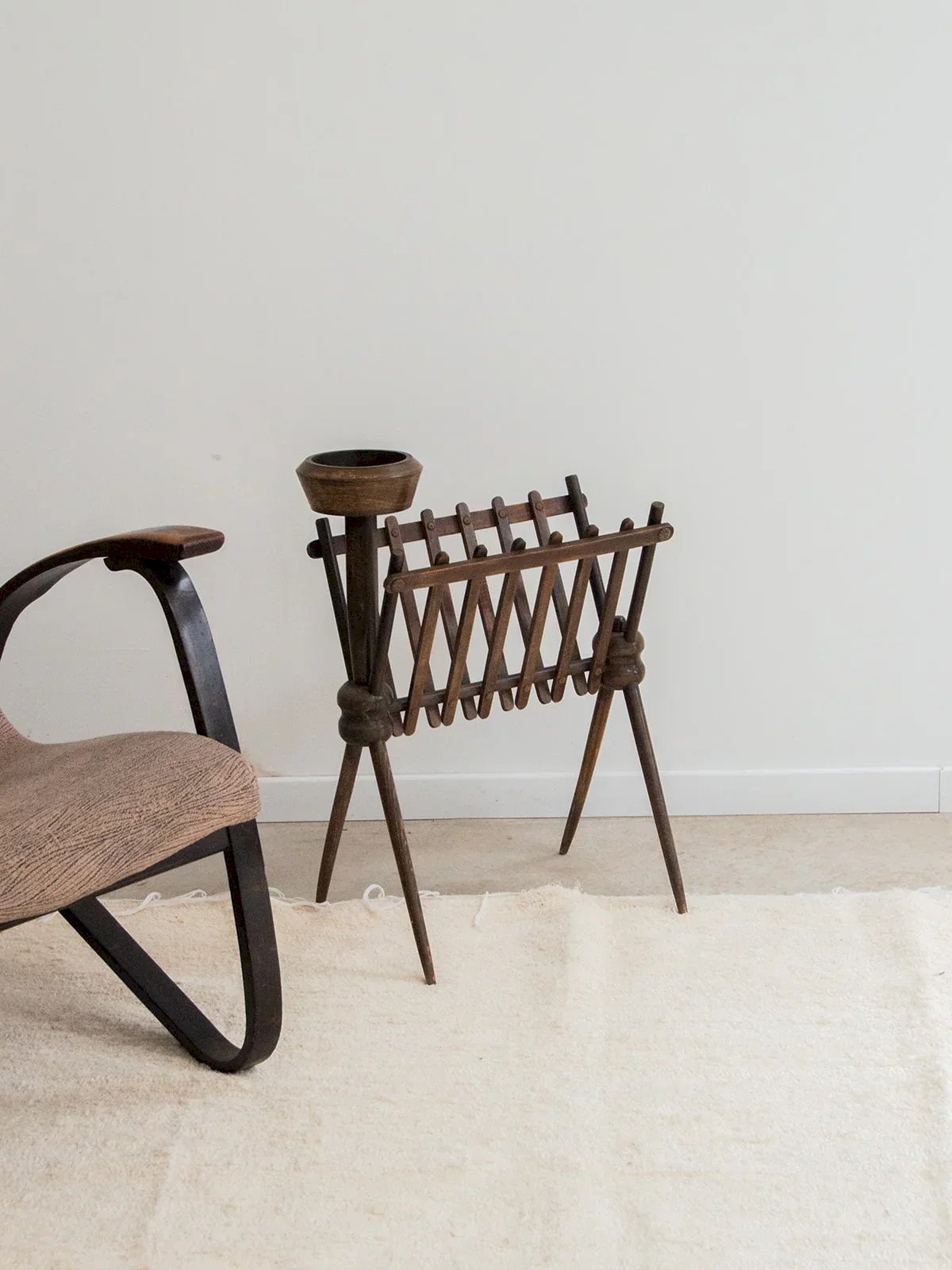 Add a touch of elegance to your interior with this refined magazine rack, featuring a perfect stand for your plants or ashtrays. Made of quality dark wood, it offers a warm and timeless finish. Its tall legs give it a modern stature while optimizing space. Perfect for lightening your decor while remaining practical, this accessory is a must for style enthusiasts. Length: 48 cm Width: 24 cm Total height: 66 cm Height of the magazine rack alone: 55.5 cm A brief history of the magazine rack The term "magazine rack" emerged in the early 20th century when newspapers and magazines became common in households. This piece of furniture, often made of wood or metal, is designed to organize and display printed publications. Initially found in living rooms and waiting areas, it embodies order and access to culture. Today, the magazine rack adapts to all interior styles, providing a practical decorative touch. Condition: Used: Item has been used. Item shows some superficial signs of wear, ...Used: Item has been used. Item shows some superficial signs of wear, fully operational and functioning correctly. It may be a demonstration model or an item returned to the store after a short period of use. any potential imperfections. Brand: Debongout Type: Curated product Material: Wood Style: Contemporary