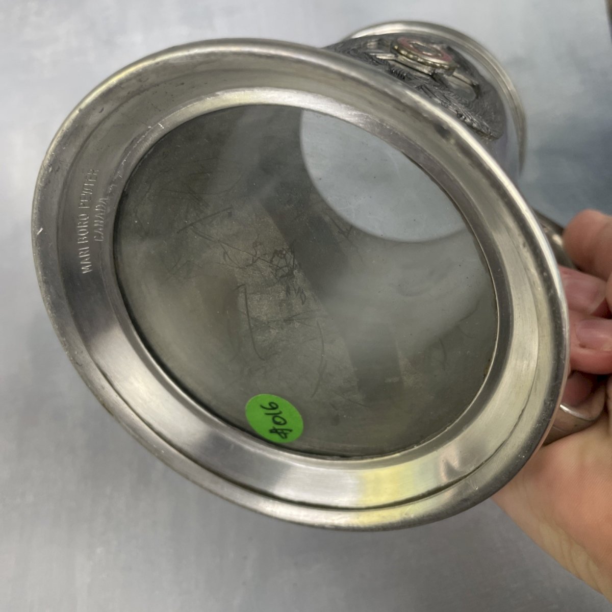 Beer stein Marlboro pewter Canada medallion Inter se nutriti A.M.P. glass bottom Height ~ 12.5 cm Drinking diameter ~ 8 cm Weight ~ 0.4 kg Good condition but missing its juice, scratches, see photos Please consider grouping your purchases to reduce shipping fees! Shipping to France: Mondial Relay by default, other rates upon request. International shipping: colissimo by default, other rates upon request. Condition: Used Item has been used. potential imperfections. Type: Stein Country of manufacture: Canada