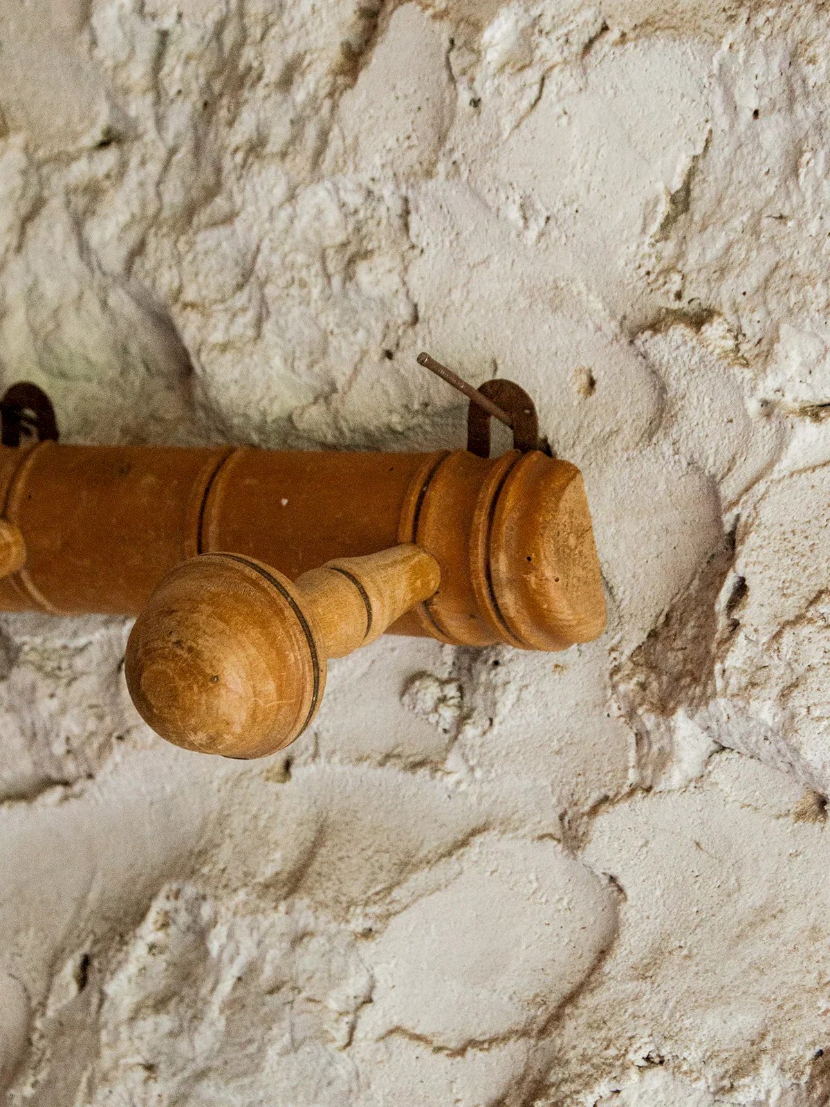 Add a touch of originality to your interior with this lightweight wooden hook, adorned with large buttons. Combining aesthetics and practicality, it is perfect for hanging your clothes or accessories. Its vintage charm and artisanal look make it a unique object that attracts all eyes. Ideal for an entrance or a bedroom, this hook will enhance your decor while being functional. Length: 23 cm Width: 14 cm Height: 6 cm A brief history of coat hooks The term "coat hook" appeared in the 18th century, although the concept dates back to antiquity. Initially simple hooks fixed to the walls, it evolved into an elegant and functional support, often freestanding. First found in the halls of bourgeois homes, it welcomed coats and hats, quickly becoming an essential element of interior design. Today, the coat hook adapts to all styles, combining practicality and aesthetics. Condition: Used: Item that has been used. Item showing some superficial signs of wear, fully operational and functioning correctly. It may be a demonstration model or an item returned to the store after a short period of use. any possible imperfections. Brand: Debongout Type: Vintage product Material: Wood Style: Contemporary