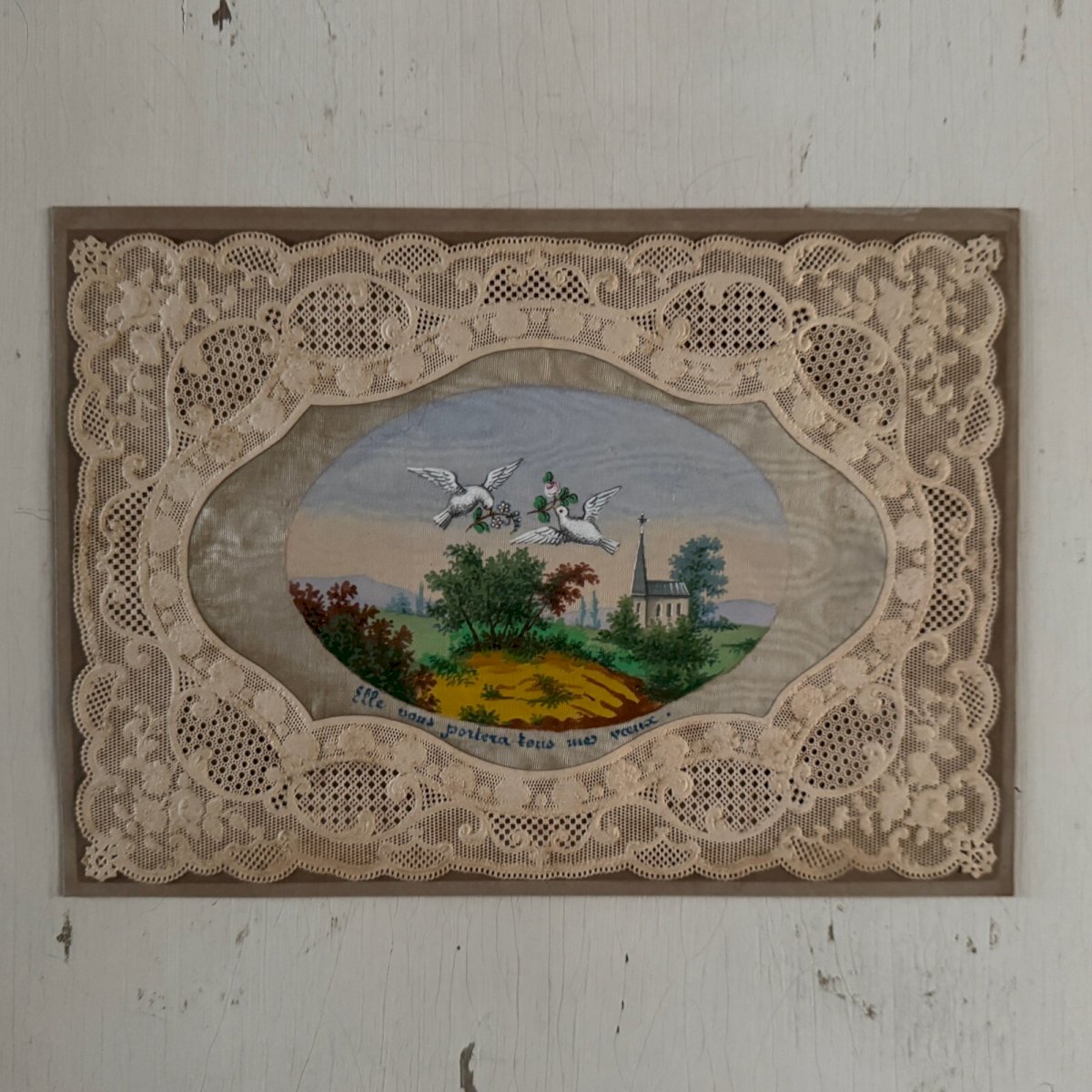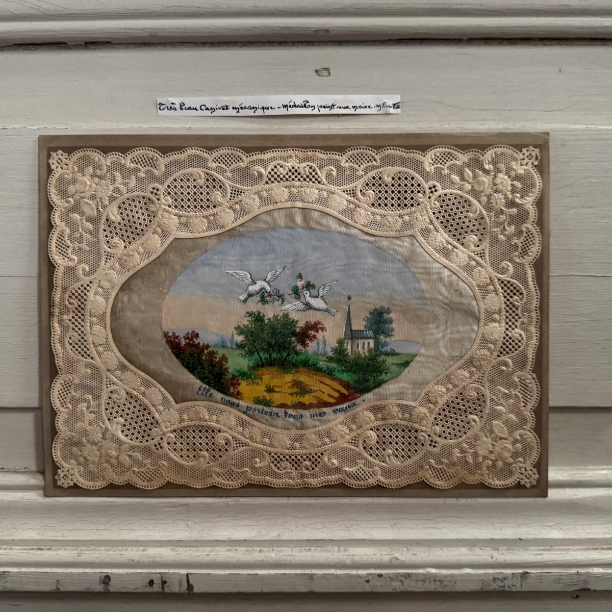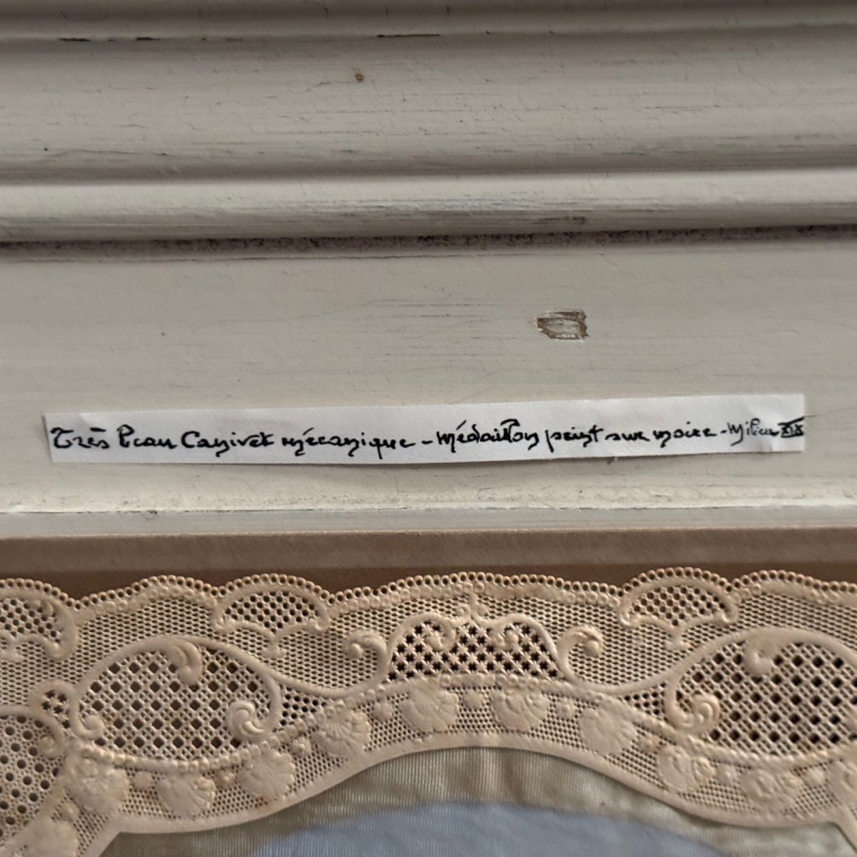 Mechanical canivet 19th century enhanced with a painting M3602 This mechanical canivet from the 19th century dates back to 1848, as noted on the back, and it has been affixed to a cardboard subsequently. The painting in the center was made by hand. It is in generally good condition, slightly warped, with small spots in places. Our photos allow you to appreciate the quality of the work. For the condition, please be sure to check the detailed photos. Feel free to zoom in. The photos are an integral part of the description. Dimensions: Height: 15 cm Width: 21.5 cm I remain at your disposal for any questions. Authenticity: Unknown Weight: Unknown Type: Showcase object, Decorative Origin: France Sub-type: Canivet Height: 15 cm Length: cm Width: 21.5 cm