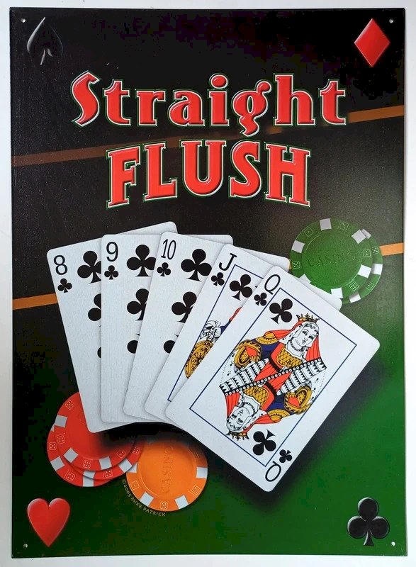 Metal sign POKER STRAIGHT FLUSH - 44 X 32 cm vintage USA decor