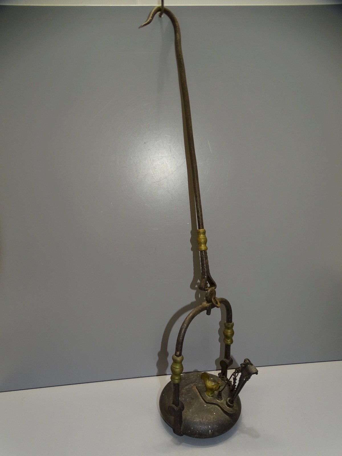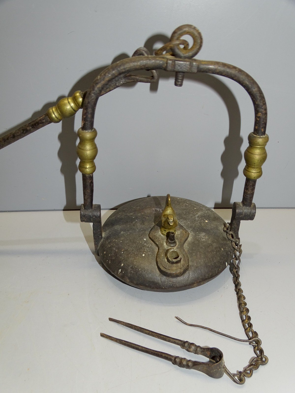 Miner's oil lamp, from the COQ in BRONZE XVIII - XIX century, complete with its clamp - Engraved St ETIENNE on the top - missing the wick and arm to unstick (see photos) - Ref. 1V251219/63 Height 63.5 cm - Diameter 12.5 cm - Weight 1 kg To contact me my email address: POSSIBLE SHIPPING BY MONDIAL RELAY or COLISSIMO on request VERY GOOD PACKAGING GUARANTEED THANK YOU for LOOKING AT ALL the PHOTOS as THEY ARE INTEGRAL PART of the DESCRIPTION and ALLOW to SEE the OBJECT BEST with ITS POSSIBLE SMALL DEFECTS - Authenticity: Original Type: Work of art Origin: France Subtype: oil lamp Style: Antiques