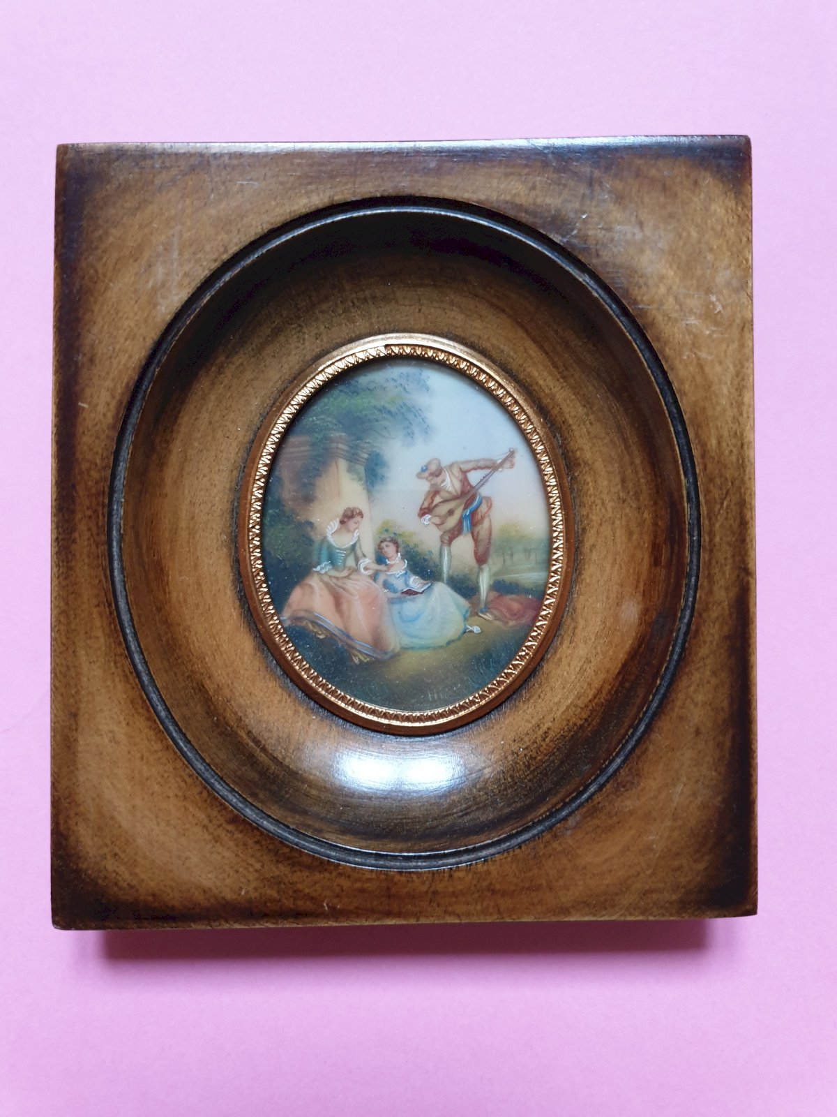 Finely painted miniature in its walnut frame.