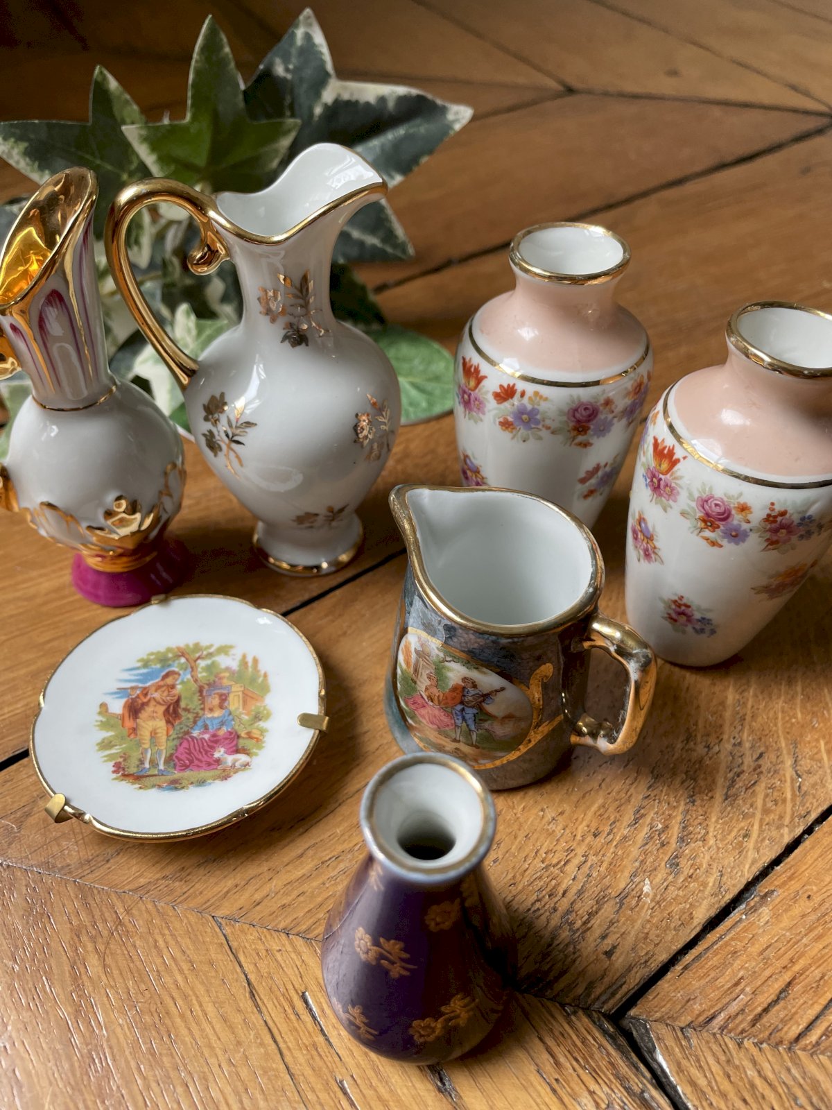 A milk jug, Fragonard decoration (4.5 cm in height / 2.5 cm in diameter),