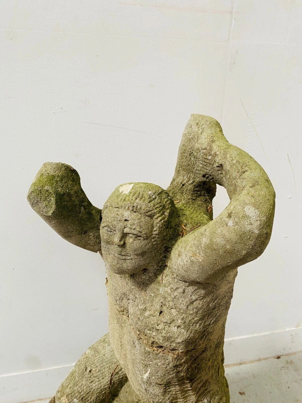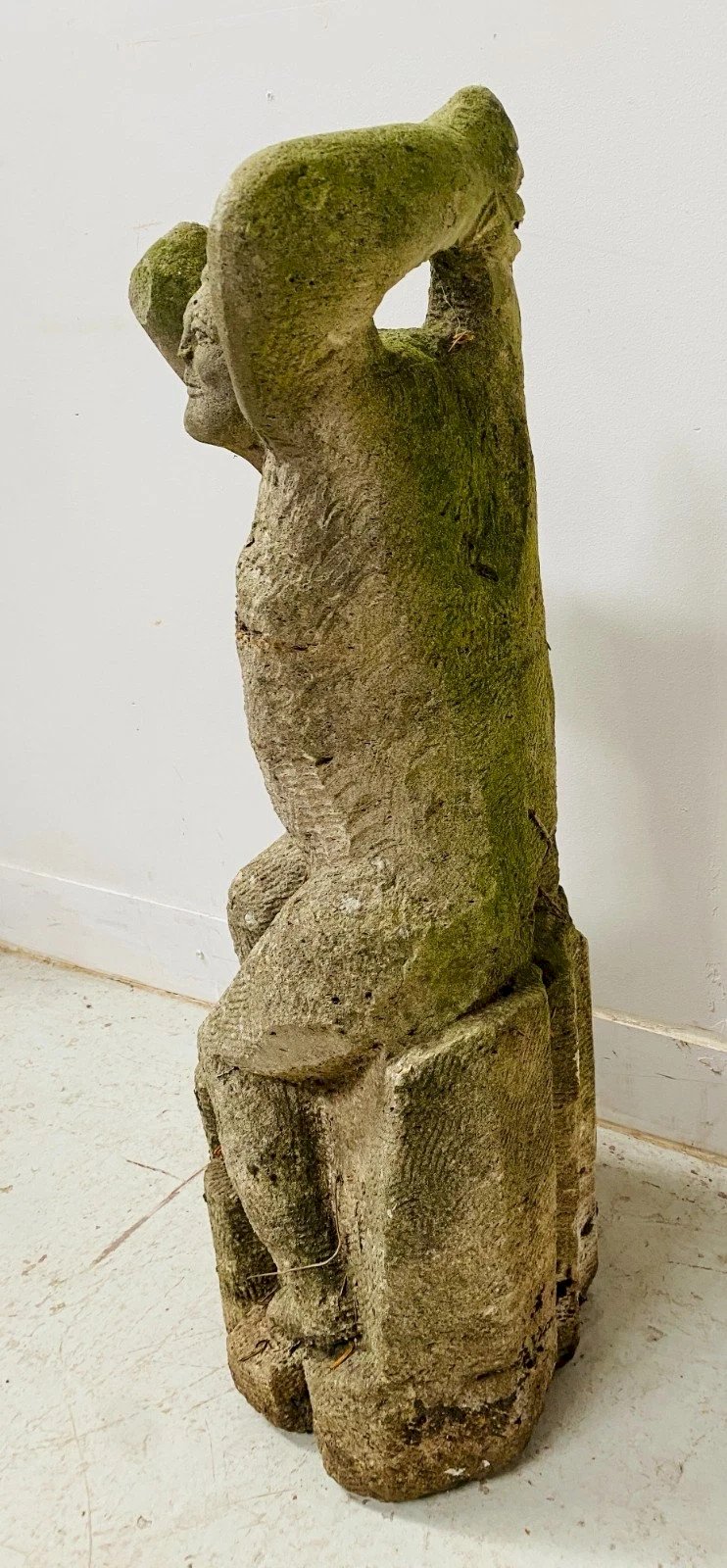 Popular art stone sculpture Sold as is, with missing parts and chips Dimensions H 89 x W 42 x D 30 cm XX century Period: Art Deco Country of manufacture: France Height: 89 Style: Unspecified Material: Stone Length: 42 Width: 30