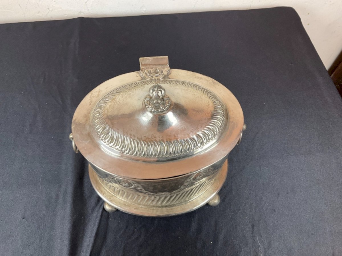 Moroccan tea box, biscuit tin.....silver-plated metal