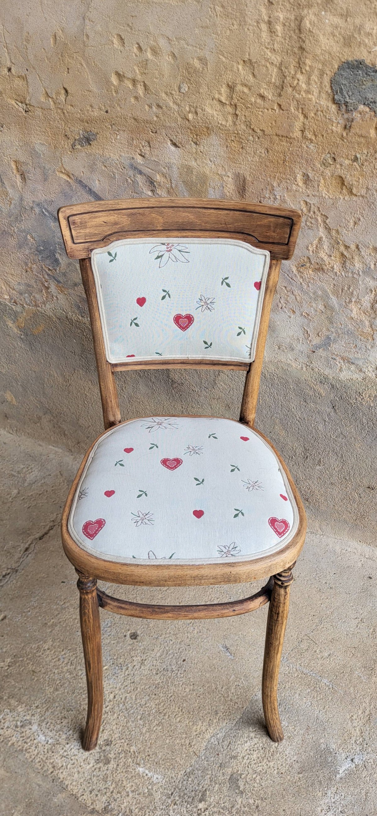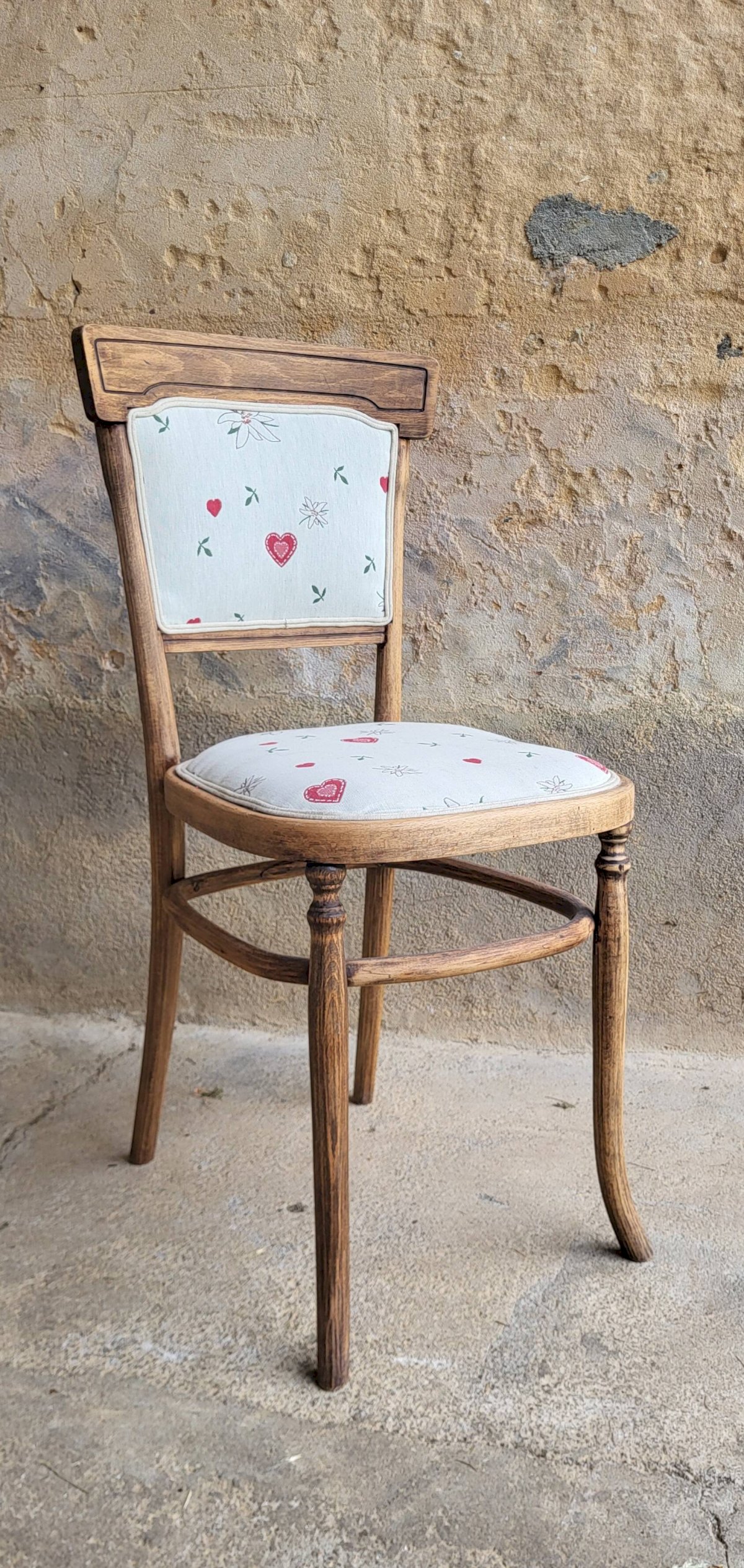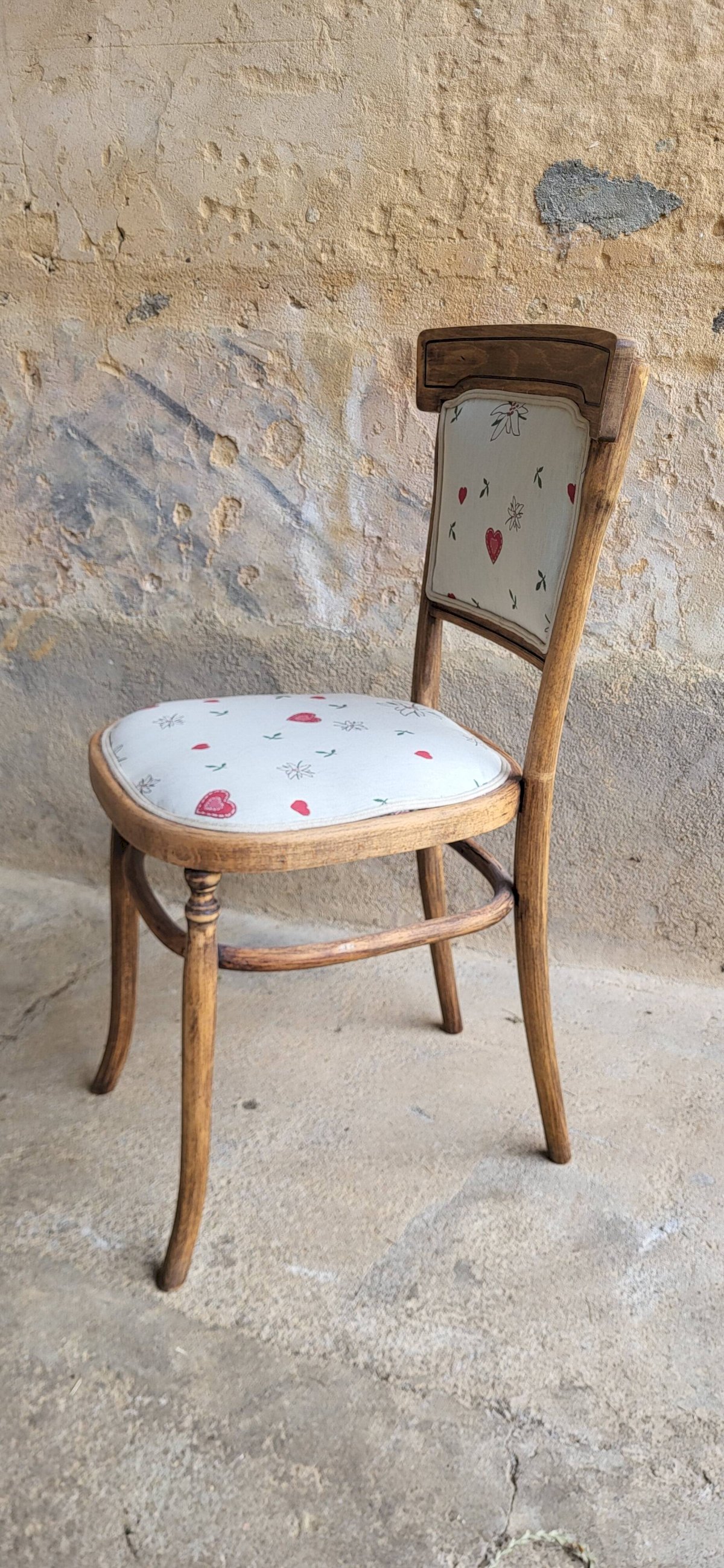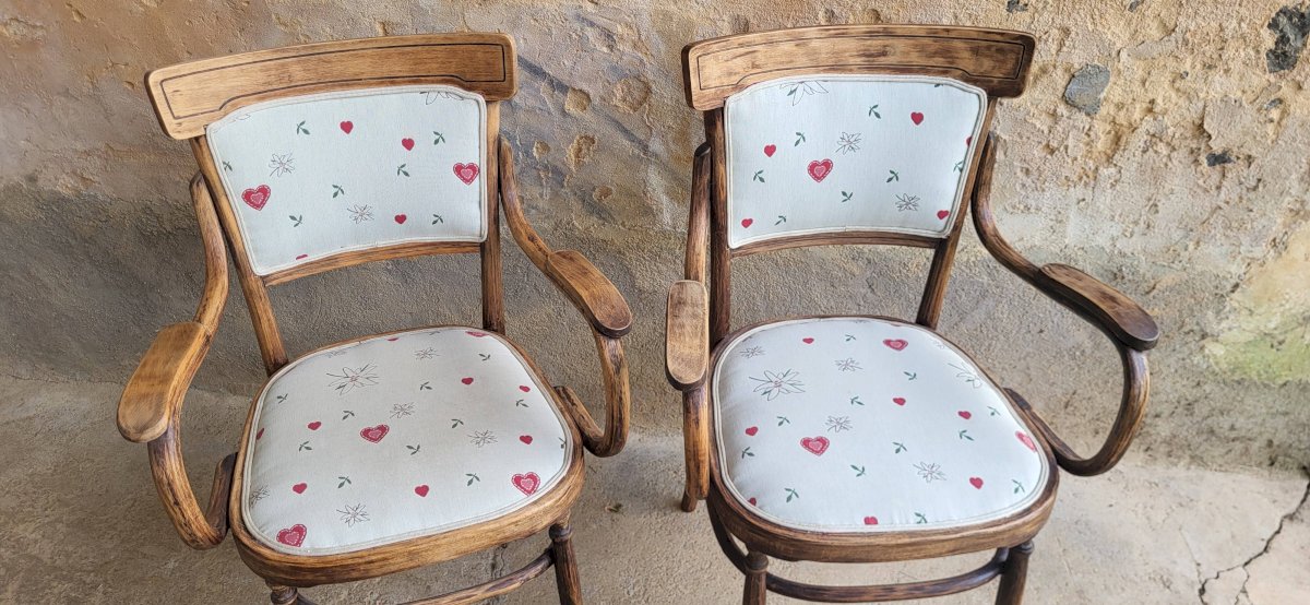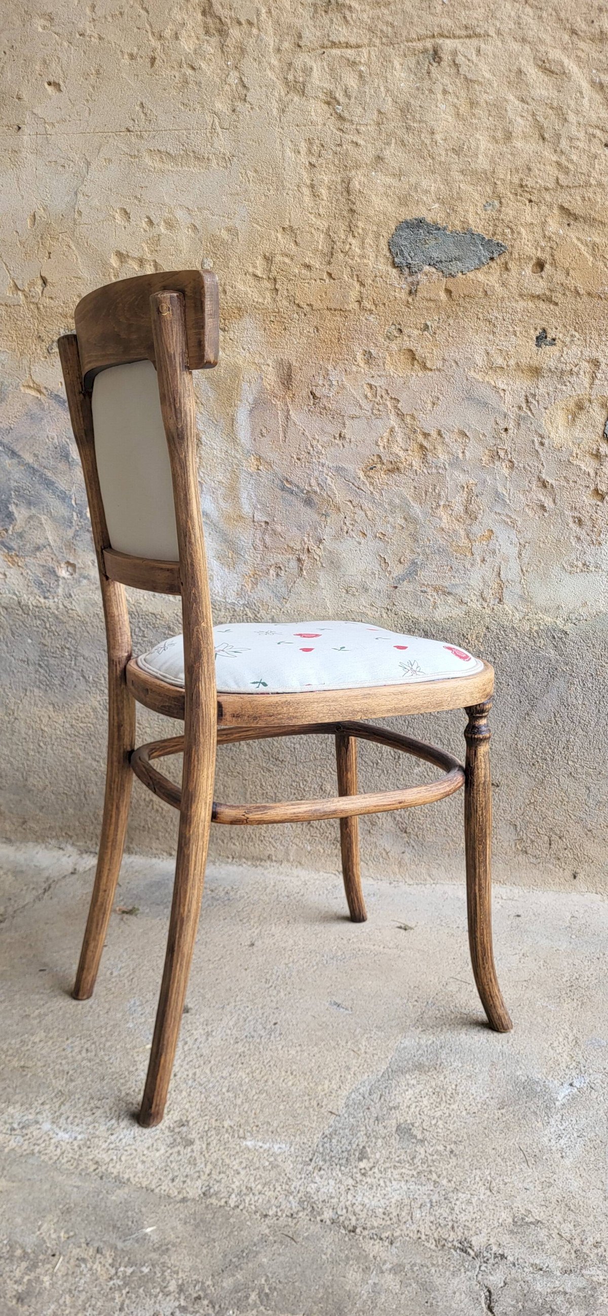 Curved wood salon Mundus Vienna Austria 1900, comprising 1 bench, 2 armchairs, and a chair. New upholstery and modern fabric.