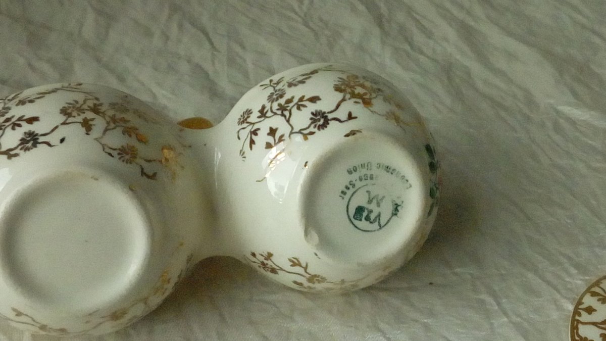 CHARMING MUSTARD POT ON CRAFT WITH FAIENCE AND THE SALT SHAKER OF THE SAME MODEL VILLEROY BOCH METTLACH FRANCE-SAAR FLORAL DECOR HEIGHT OF MUSTARD POT 8 cm BASE WIDTH 11.50 cm DIAMETER 5.30 cm WIDTH 6.50 cm HEIGHT OF SALT SHAKER 5.50 cm LENGTH 11.50 cm WIDTH 5 cm IN PERFECT CONDITION Country of origin: Germany