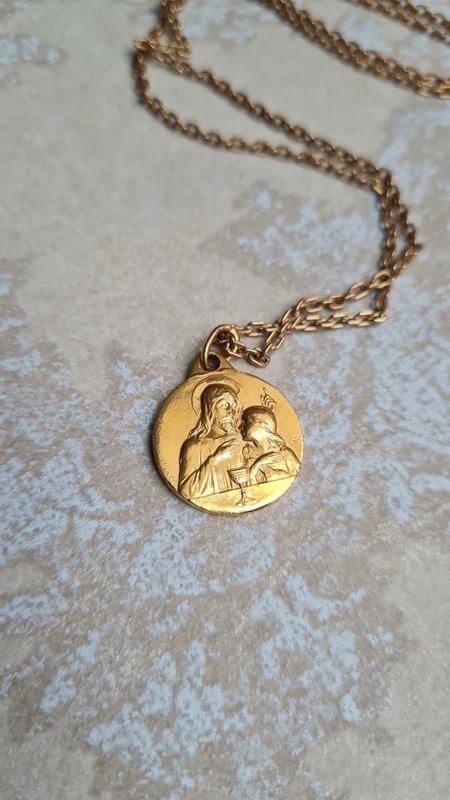 above €25, please choose a carrier if possible take the opportunity to buy in bulk: 5 items - 10% 10 items - 20% 20 items - 30% please look closely at the photos to see imperfections collar length: 55 cm pendant: 2.5 cm width: 1.9 cm #necklace #gift #vintage #chic #religiousnecklace #jesusnecklace #goldplatedmedal #antiquejewelry #goldplatedjewelry #goldplating #lassering...