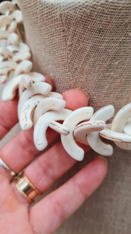 Above €25, please choose a carrier if possible. Take advantage of buying in bulk: 5 items - 10% 10 items - 20% 20 items - 30% Please look closely at the photos to see imperfections. White turquoise necklace tested, and has the same frequency as blue turquoise. Neck circumference: 44 cm #necklace #gift #vintage #chic #whiteturquoisenecklace #choker #jewelryfrench #necklace #jewelleryfrench