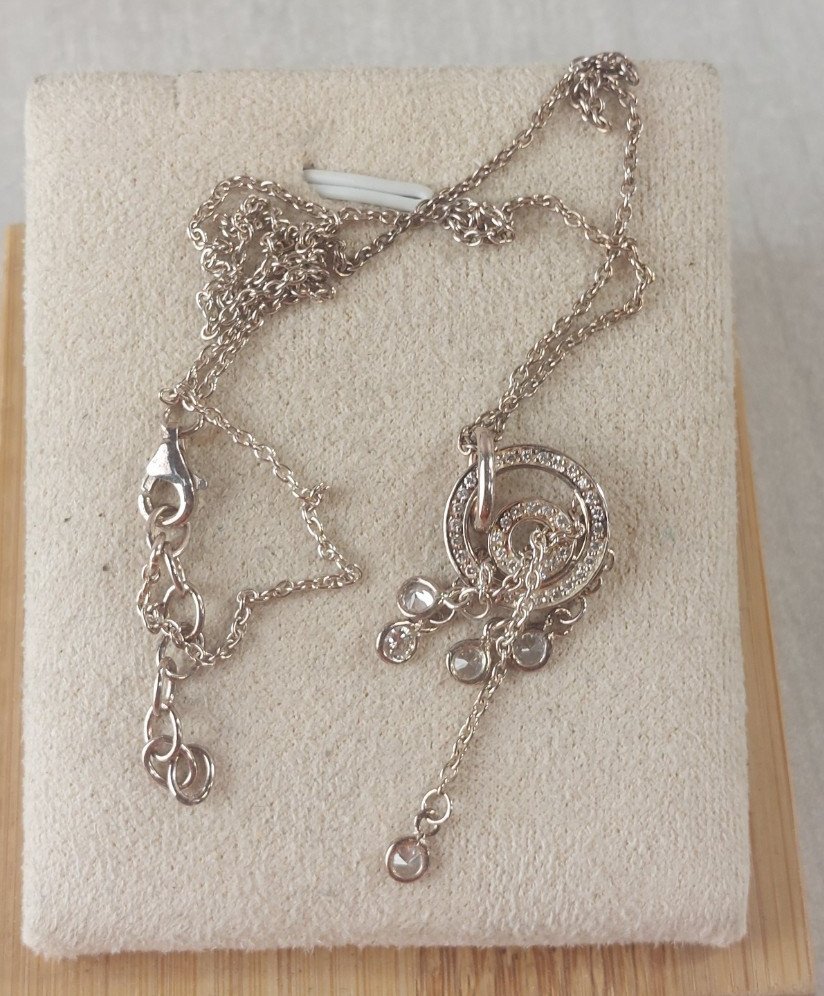 Necklace with pendant, zircon decoration, in rose silver in good condition, wear on the rose plating pendant not marked, necklace marked 925 dimensions pendant 4.4 cm X 1.4 cm total necklace length 44.5 cm total weight 5.40 g see photos Check out my other items! reduced shipping costs for bulk purchases Condition: Used Item has been worn. any possible imperfections. Brand: Maty Metal purity: 925 parts per 1000 Metal: Sterling silver