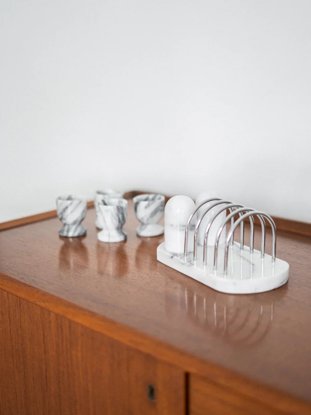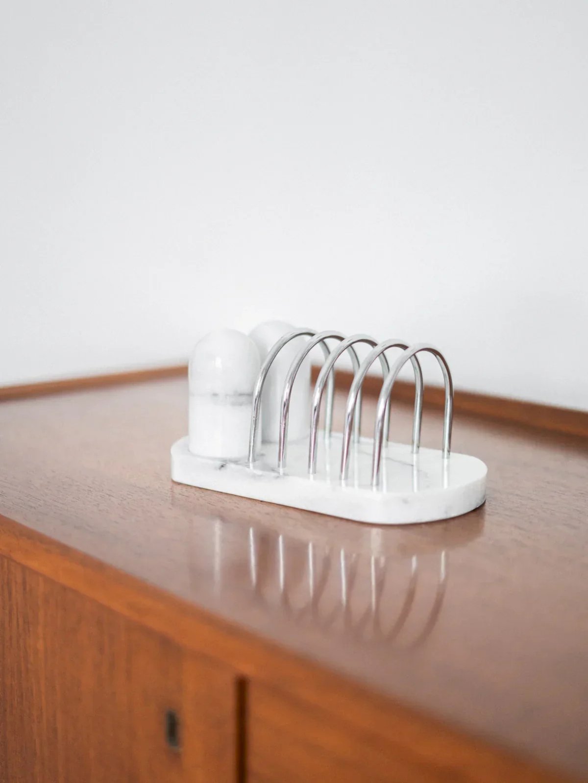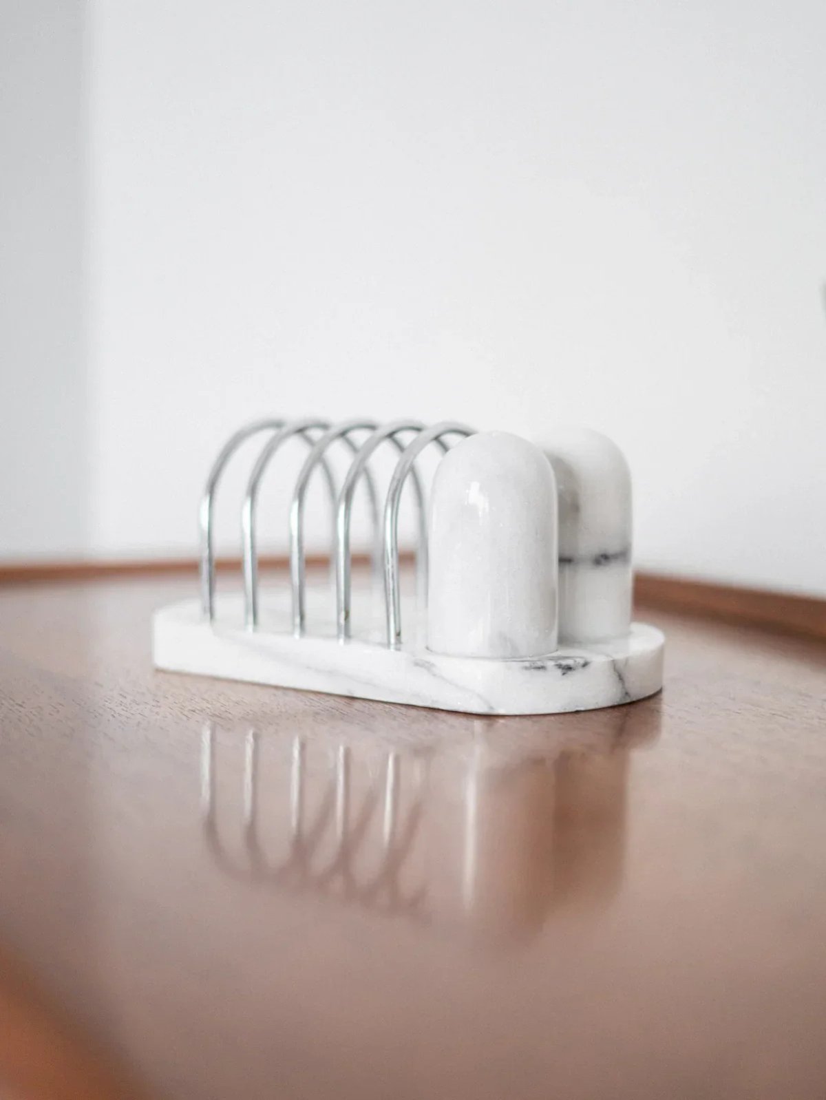 Add a touch of elegance to your table with this marble salt and pepper shaker set, accompanied by a refined metal napkin holder. The marble, with its unique veins, brings a sophisticated note to your decor, while the metal napkin holder combines functionality and modern aesthetics. Perfect for your daily meals or special occasions, this set is the ideal accessory to enhance your dining moments. Treat yourself to this chic and practical duo for a consistently elegant table. Length: 21 cm Width: 11.5 cm Height: 9.5 cm Thickness of the tray: 2 cm Condition: Used item with some superficial signs of wear, fully operational and functioning correctly. It may be a demonstration model or an item returned to the store after a short period of use, with possible imperfections. Brand: Debongout Type: Thrifted product Material: Marble, Metal Style: Country