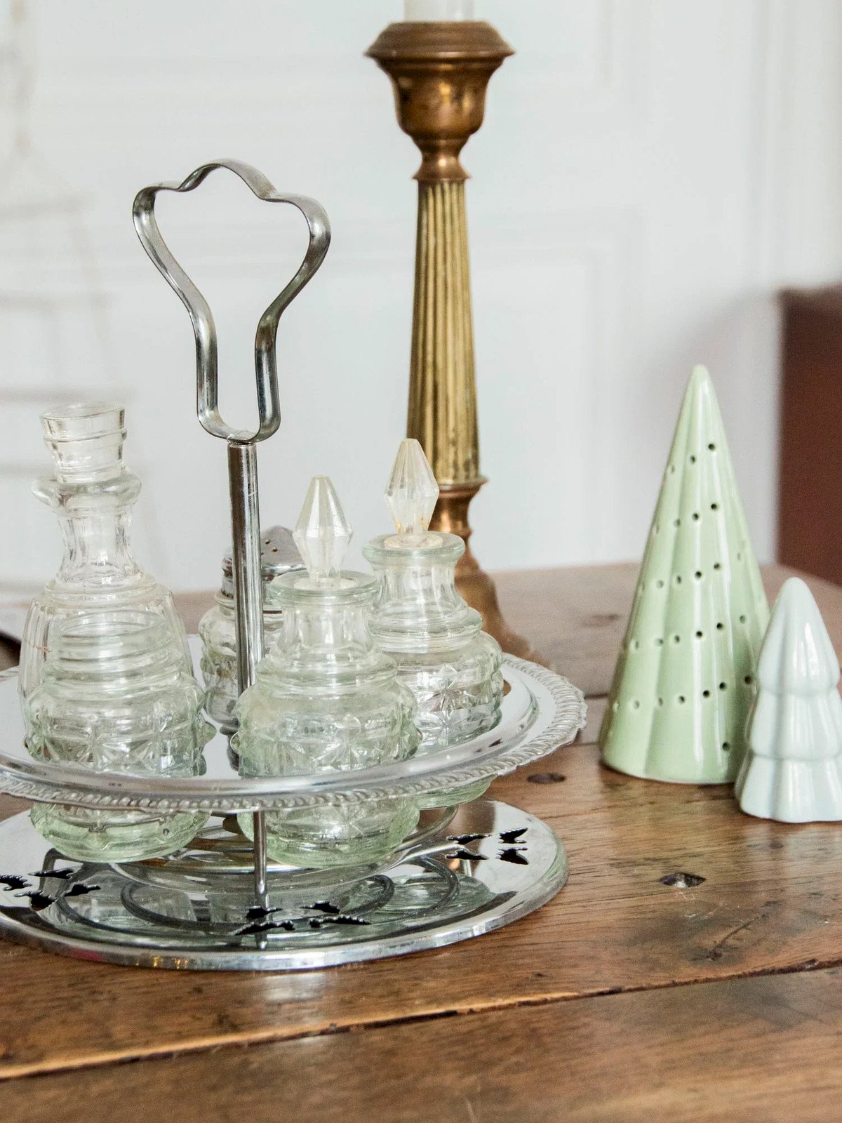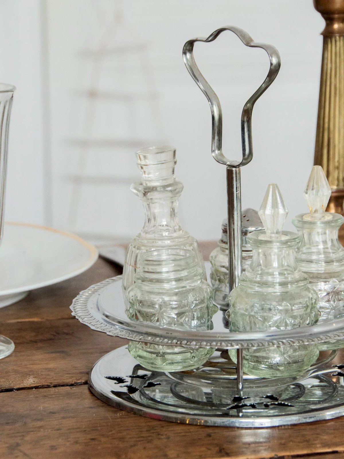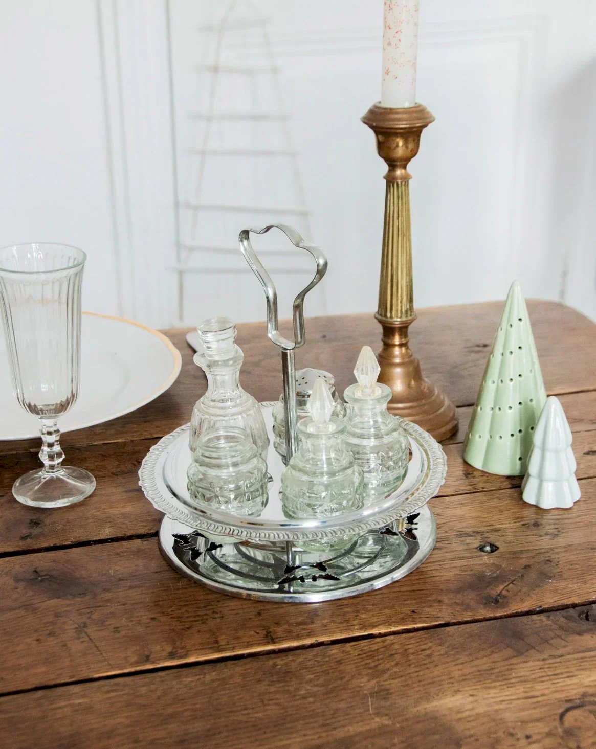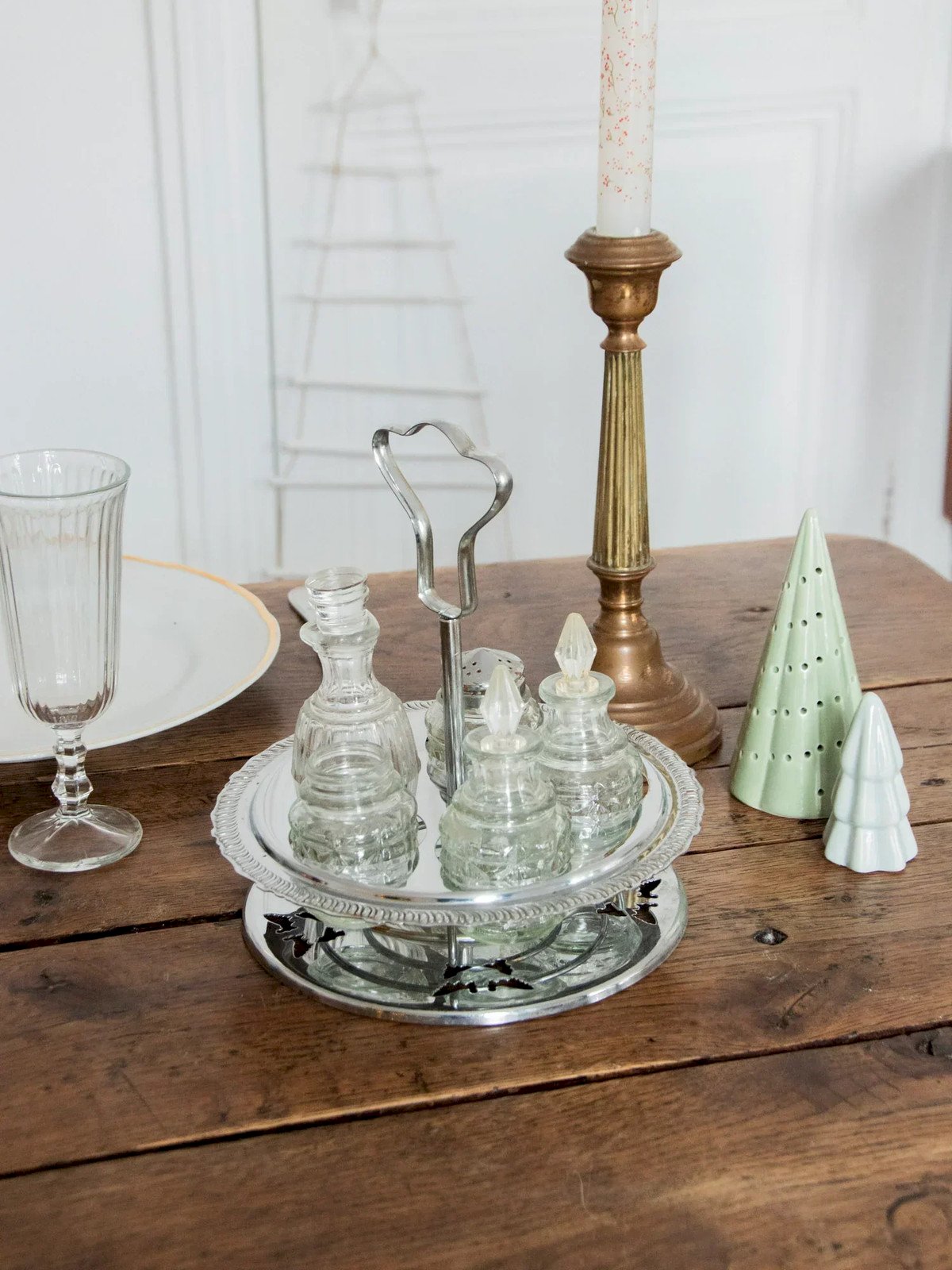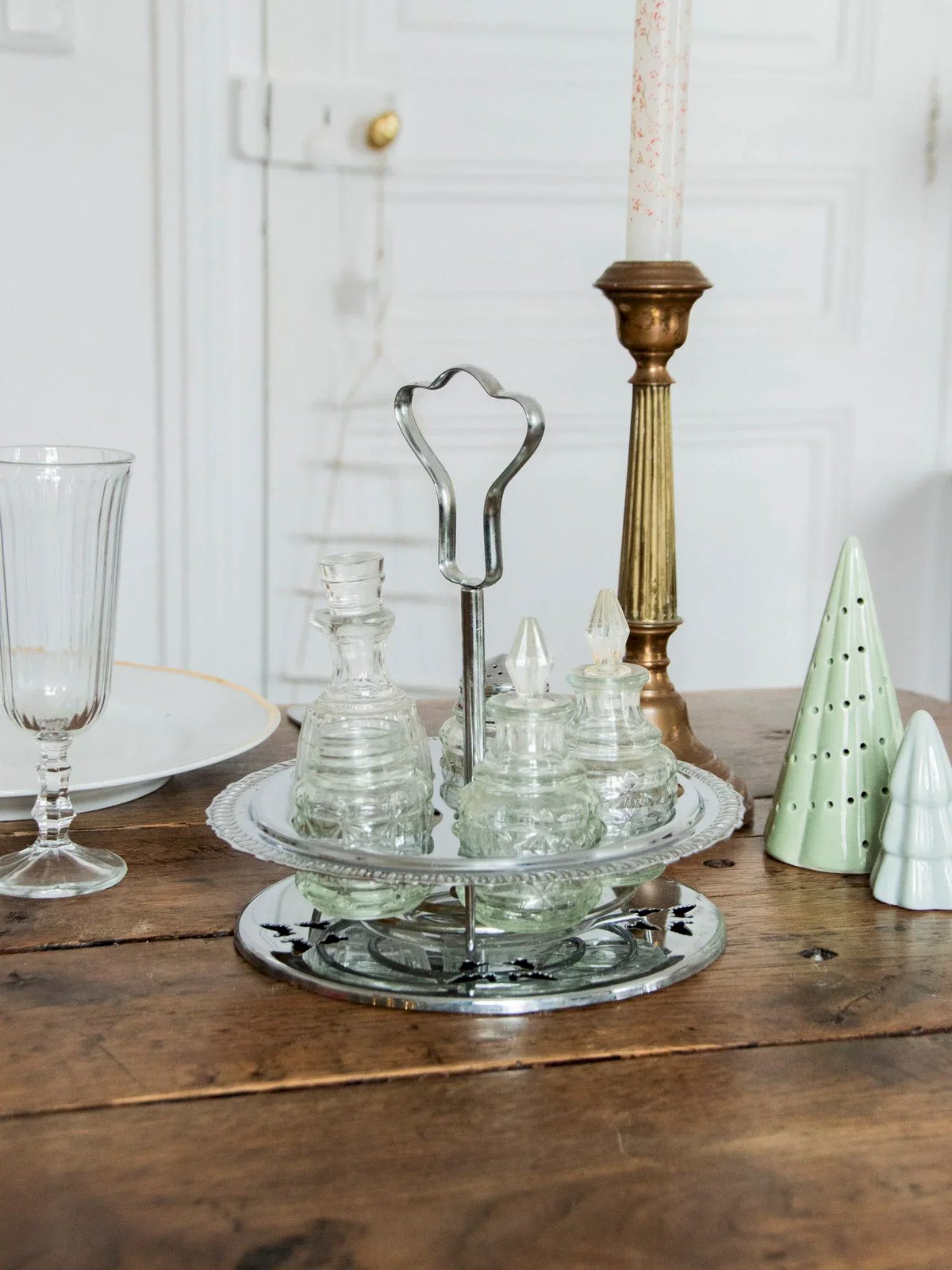 Discover this rotating condiment service made up of glass jars in various sizes, ideal for organizing your spices and seasonings on the table or countertop. Its carousel design allows easy access, and its compact proportions accommodate a nice variety of ingredients, while the glass showcases the contents and adds a touch of contemporary transparency. Perfect for a warm and tidy kitchen. Missing the salt shaker lid. Height: 21 cm Diameter at widest point: 18 cm Condition: Used item. Item showing some signs of superficial wear, fully operational and functioning correctly. It may be a demonstration model or an item returned to the store after a short period of use, with possible imperfections. Brand: Debongout Type: Thrifted product Material: Stainless steel, Glass Style: Country