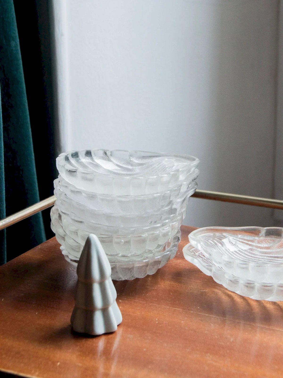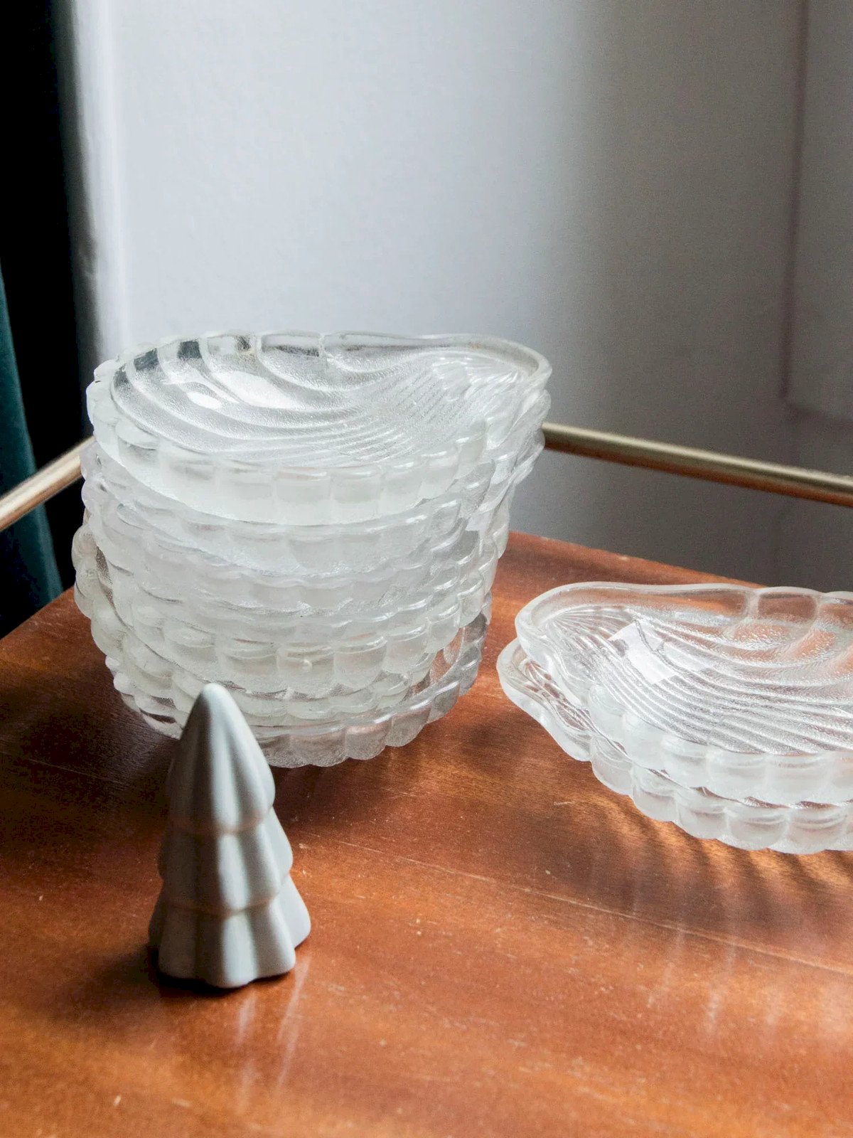 Add this set of nine opaque glass ramekins, shaped like delicate seashells, to bring a marine and refined touch to your table. Their compact size is ideal for presenting condiments, tapas, or small sweets, and they can also be used as bowls for candles or jewelry. The opaque glass diffuses a soft light that complements both everyday dining and an elegant setup for guests, creating a warm and inviting atmosphere. Length: 13 cm Width: 9 cm Height: 2 cm Condition: Used Item: Product has been used. Item shows some signs of superficial wear... Used Item: Product has been used. Item shows some signs of superficial wear, fully operational and working properly. It may be a demonstration model or a product returned to the store after a short period of use, including any possible imperfections. Brand: Debongout Type: Vintage product Material: Glass Style: Country