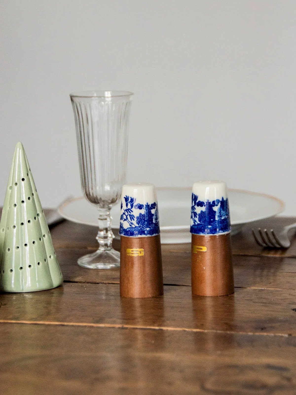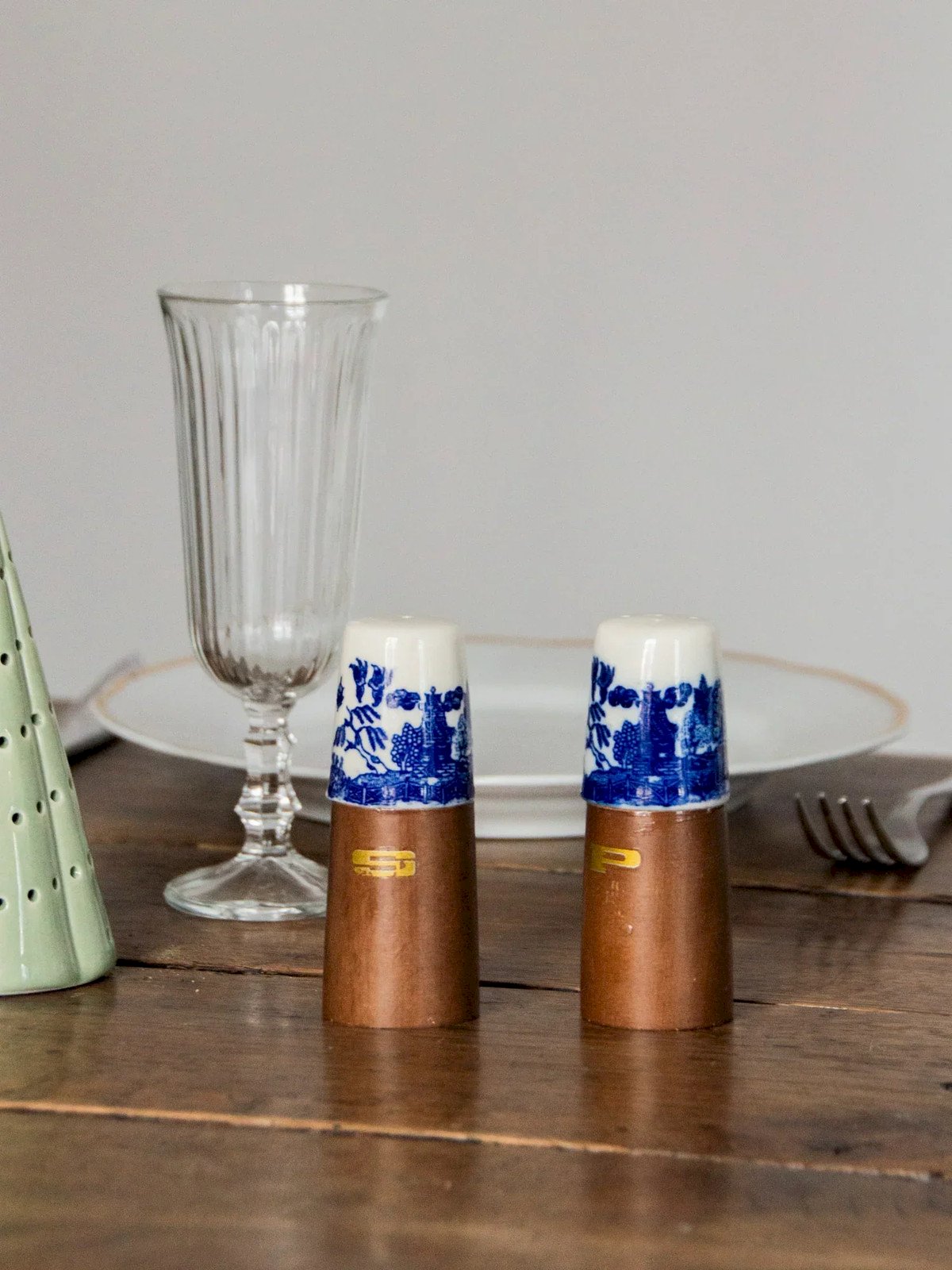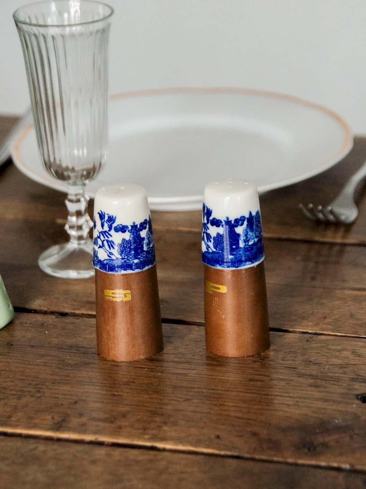 Elevate your table with this duo of low salt and pepper shakers made from wood and earthenware, featuring compact proportions perfectly designed for everyday life. Their stable base and narrower top provide a comfortable grip and precise dosing of spices, ideal for complementing breakfasts and intimate dinners. The small gold letters add a discreet and elegant detail, bringing warmth and character to your tableware. Height: 9 cm Diameter: 3.5 cm Condition: Used: Item has been used. Item shows some superficial signs of wear... Used: Item has been used. Item shows some superficial signs of wear, fully operational and functioning correctly. It may be a demonstration model or an item returned to the store after a short period of use. Any imperfections are to be noted. Brand: Debongout Type: Vintage product Material: Earthenware, Wood Style: Country
