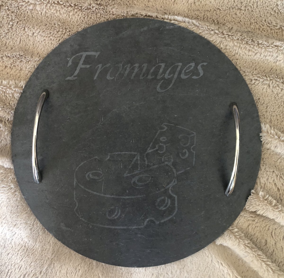 Sell this magical cheese board, brand new in its packaging. Slate board with 2 metal handles.
