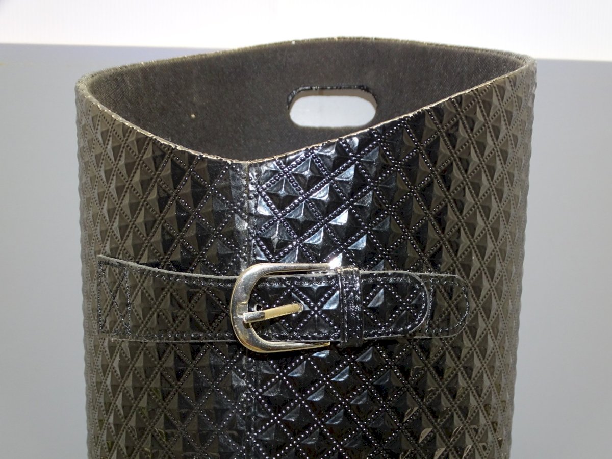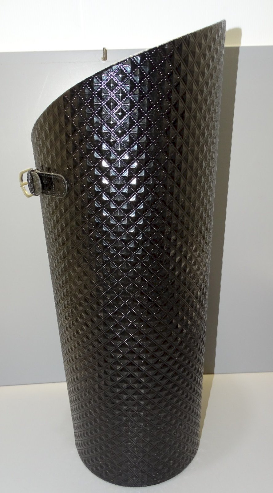 Nice vintage black shiny plastic umbrella stand - interior lined in matte (1 scratch inside) - (see photos) - in good used condition - Ref: 1V251219/60 - Height 59.8 cm - Top 24.4 x 26.5 cm - Weight 1.3 kg - For any questions: SHIPPING POSSIBLE VIA MONDIAL RELAY or COLISSIMO upon request VERY GOOD PACKAGING GUARANTEED THANK YOU for LOOKING at ALL the PHOTOS as THEY ARE AN INTEGRAL PART of the DESCRIPTION and ALLOW YOU to SEE the ITEM AT ITS BEST with ITS POSSIBLE SMALL DEFECTS - Condition: Used: Item that has been used. Item showing some superficial signs of wear, ...Used: Item that has been used. Item showing some superficial signs of wear, fully operational and functioning correctly. It may be a demonstration model or an item returned to the store after a short period of use. any possible imperfections. Type: Umbrella stand Height: 59.8 cm Length: 26.5 cm Width: 24.4 cm