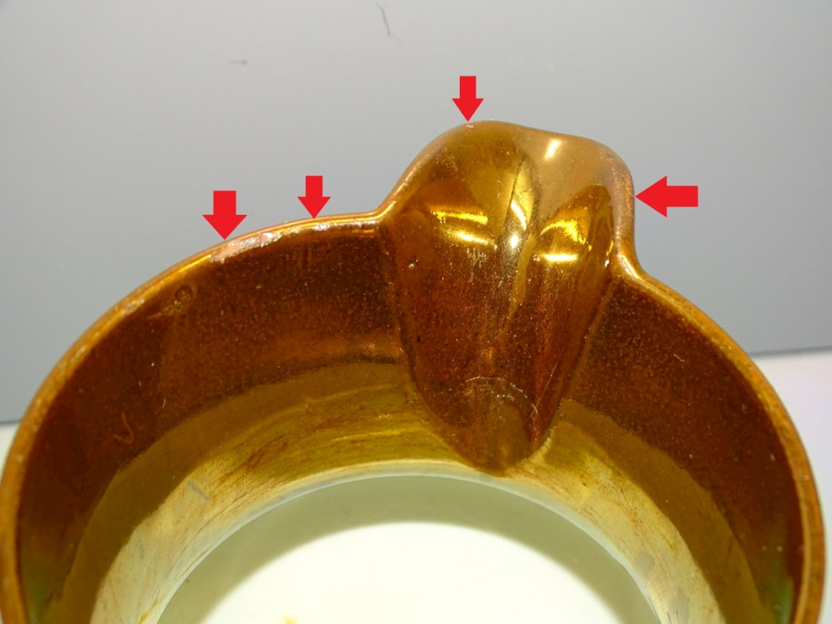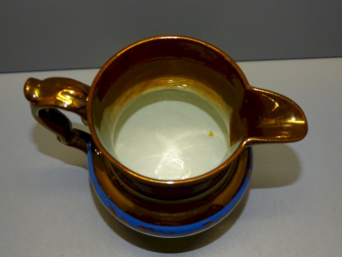 Antique milk jug or creamer ceramic from Jersey - minor wear on the spout and on the handle (see photos) - found in a attic - in usable condition - Ref.42141025/97 - Height 12.8 cm - Length 15 cm - Maximum diameter 10.4 cm - Weight 0.325 kg - To contact me, my email address: SHIPPING POSSIBLE VIA MONDIAL RELAY or COLISSIMO upon request VERY GOOD PACKAGING GUARANTEED THANK YOU for CAREFULLY VIEWING ALL the PHOTOS as THEY ARE AN INTEGRAL PART of the DESCRIPTION and ALLOW you to SEE the ITEM BETTER - Condition: Used: Item has been used. Item shows some signs of superficial wear,... Used: Item has been used. Item shows some signs of superficial wear, fully operational and functioning correctly. It may be a demonstration model or an item returned to the store after a short period of use. any possible imperfections. Color: shiny brown/blue Brand: Jersey Type: Creamer Material: Ceramic