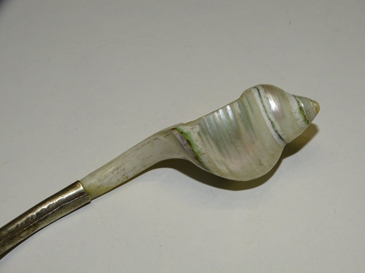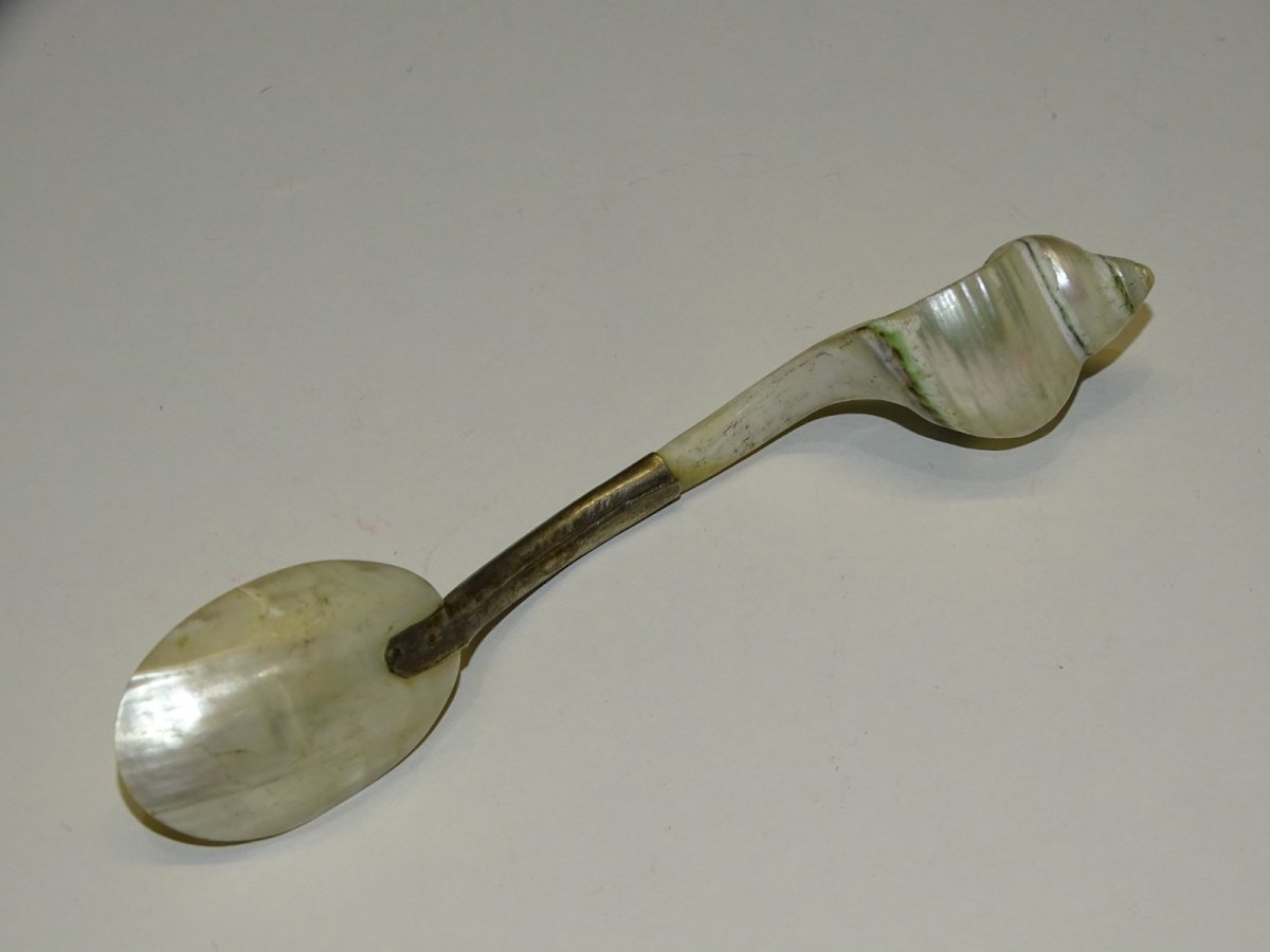 Pretty vintage mother-of-pearl and silver-plated spoon, shell-shaped handle - attic find, in good usable condition, needs cleaning (see photos) - Ref. 1V240718/495 - Length 13.2 cm - Bowl 3.8 x 2.5 cm - Weight 22 g - To contact me, my email address: SHIPPING POSSIBLE VIA MONDIAL RELAY or COLISSIMO upon request VERY GOOD PACKAGING GUARANTEED PLEASE take a GOOD LOOK AT ALL the PHOTOS as THEY ARE AN INTEGRAL PART of the DESCRIPTION and ALLOW YOU TO SEE the ITEM BEST with its POSSIBLE SMALL IMPERFECTIONS - Condition: Used: Item has been used. Please refer to the seller's description for more details... Used: Item has been used. possible imperfections.