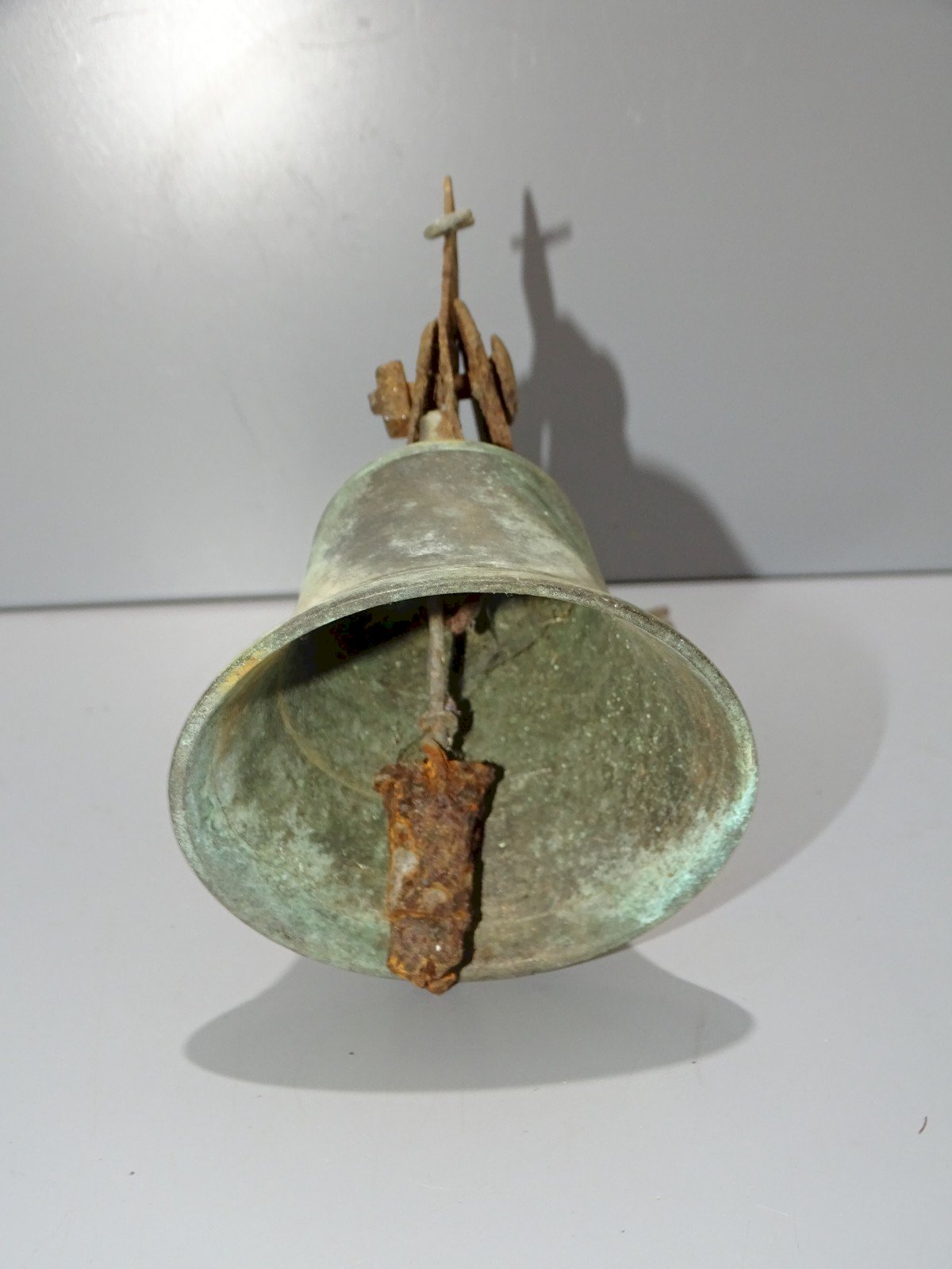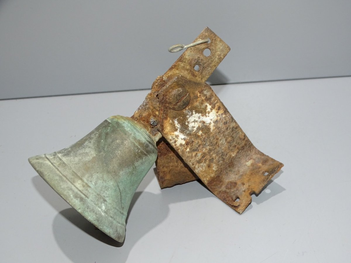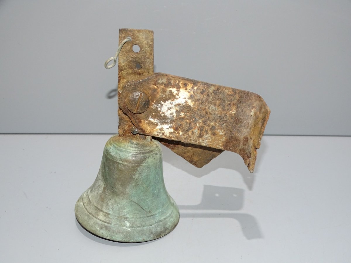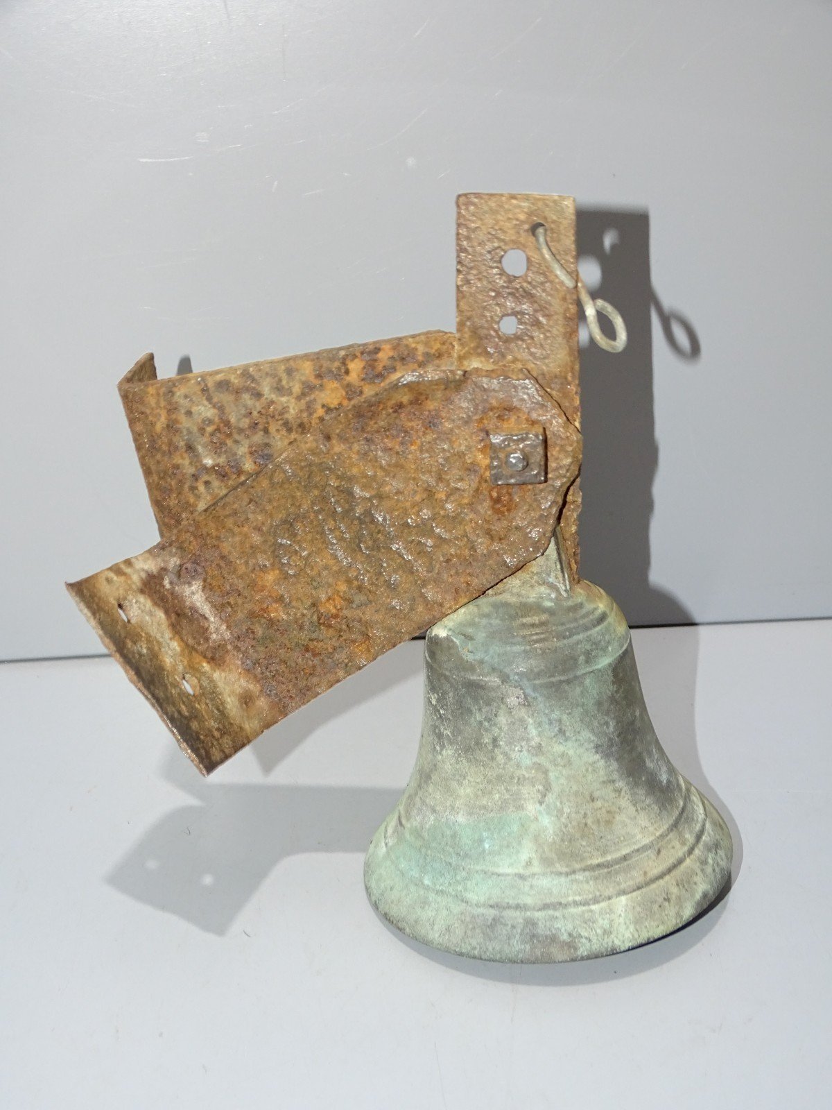 Old front door bell with its rusty metal support - the clapper is not original (see photos) - juice of findings - to be cleaned - Ref. 1V250707/55 - Length of legs 12 cm - Diameter of bell 9.7 cm Total Height 17.6 cm - Weight 0.663 kg SHIPPING POSSIBLE VIA MONDIAL RELAY or COLISSIMO upon request VERY GOOD PACKAGING GUARANTEED PLEASE LOOK AT ALL the PHOTOS as THEY ARE AN INTEGRAL PART of the DESCRIPTION and ALLOW YOU TO SEE the ITEM AS BEST AS POSSIBLE with ITS SMALL POSSIBLE DEFECTS -