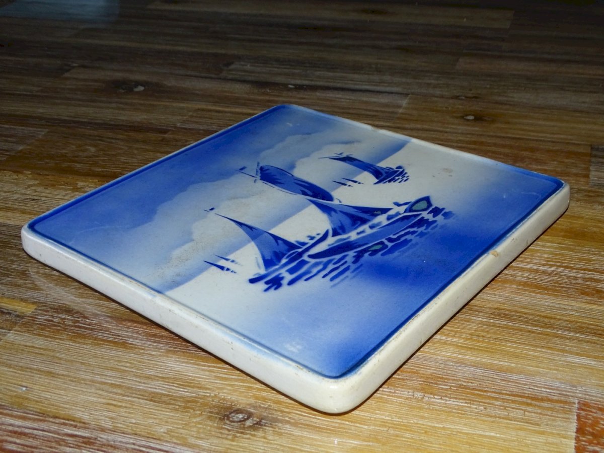 Pretty ceramic trivet Moulin des Loups model Marine - decorated with sailboats - some stains and signs of use - 1 chip on the edge (see photos) - From a collection, found in an attic, in good usable condition - Ref: 1V251219/87 - 20.4 x 20.4 cm - Weight 0.942 kg - For any questions: SHIPPING POSSIBLE VIA MONDIAL RELAY or COLISSIMO upon request VERY GOOD PACKAGING GUARANTEED PLEASE TAKE A GOOD LOOK AT ALL THE PHOTOS as THEY ARE AN INTEGRAL PART of the DESCRIPTION and ALLOW YOU TO SEE the ITEM AS BEST AS POSSIBLE with ITS POSSIBLE SMALL DEFECTS -