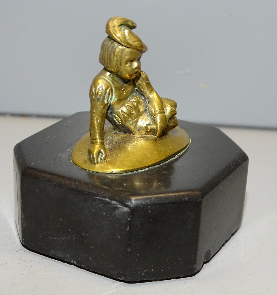 Pretty old small bronze young page on a black marble plaque - presence of verdigris and 1 chip + some wear on the marble - with label little boy blue - signs of use on the marble (photos) - pure find, taken from an attic - Ref. 1V250703/113 Total Height 6 cm - Bronze Height 2.8 cm - Length 3.84 cm - Weight 190 g For contact, my email address: SHIPPING POSSIBLE VIA MONDIAL RELAY or COLISSIMO upon request VERY GOOD PACKAGING GUARANTEED THANK YOU for CAREFULLY LOOKING at ALL the PHOTOS as THEY ARE AN INTEGRAL PART of the DESCRIPTION and ALLOW you to SEE the ITEM in the BEST WAY with its SMALL POSSIBLE DEFECTS - Material: Bronze