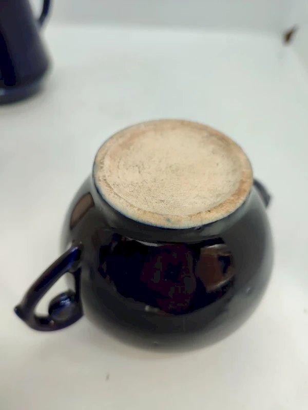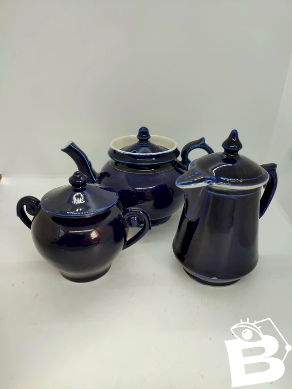 Beautiful old set in midnight blue in good condition, it includes a teapot, a milk jug, and a sugar bowl. Nice set with normal wear due to its age...