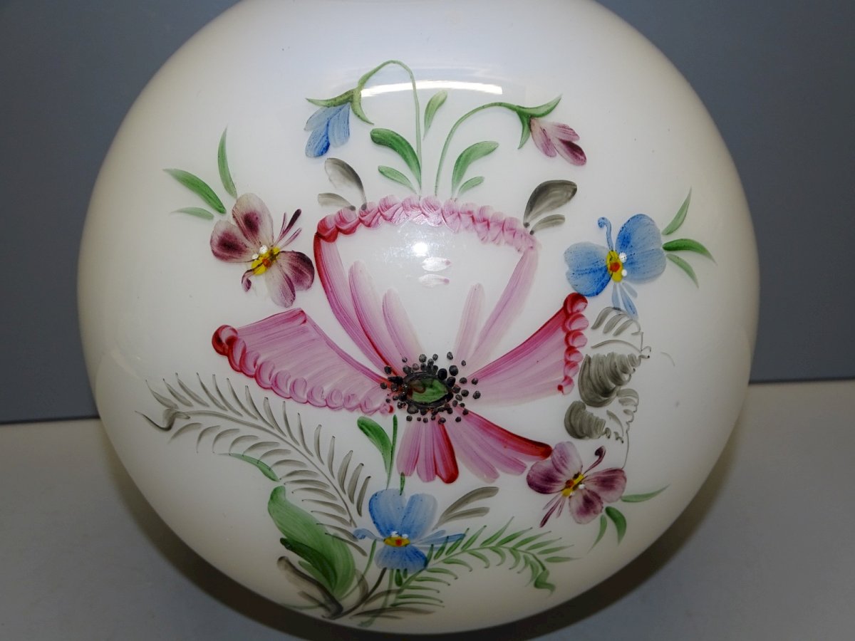 Pretty white opaline globe with a nice hand-painted flower design on the front - (see photos) - Juice of finds - Ref: 1V251219/21 - Height 19 cm - Max diameter 20 cm - Opening diameters 5.8 and 6 cm - Weight 0.648 kg - For any questions: SHIPPING POSSIBLE VIA MONDIAL RELAY or COLISSIMO upon request VERY GOOD PACKAGING GUARANTEED THANK YOU for CAREFULLY LOOKING AT ALL the PHOTOS as THEY ARE AN INTEGRAL PART of the DESCRIPTION and ALLOW you to SEE the ITEM at its BEST with ITS POSSIBLE SMALL DEFECTS -
