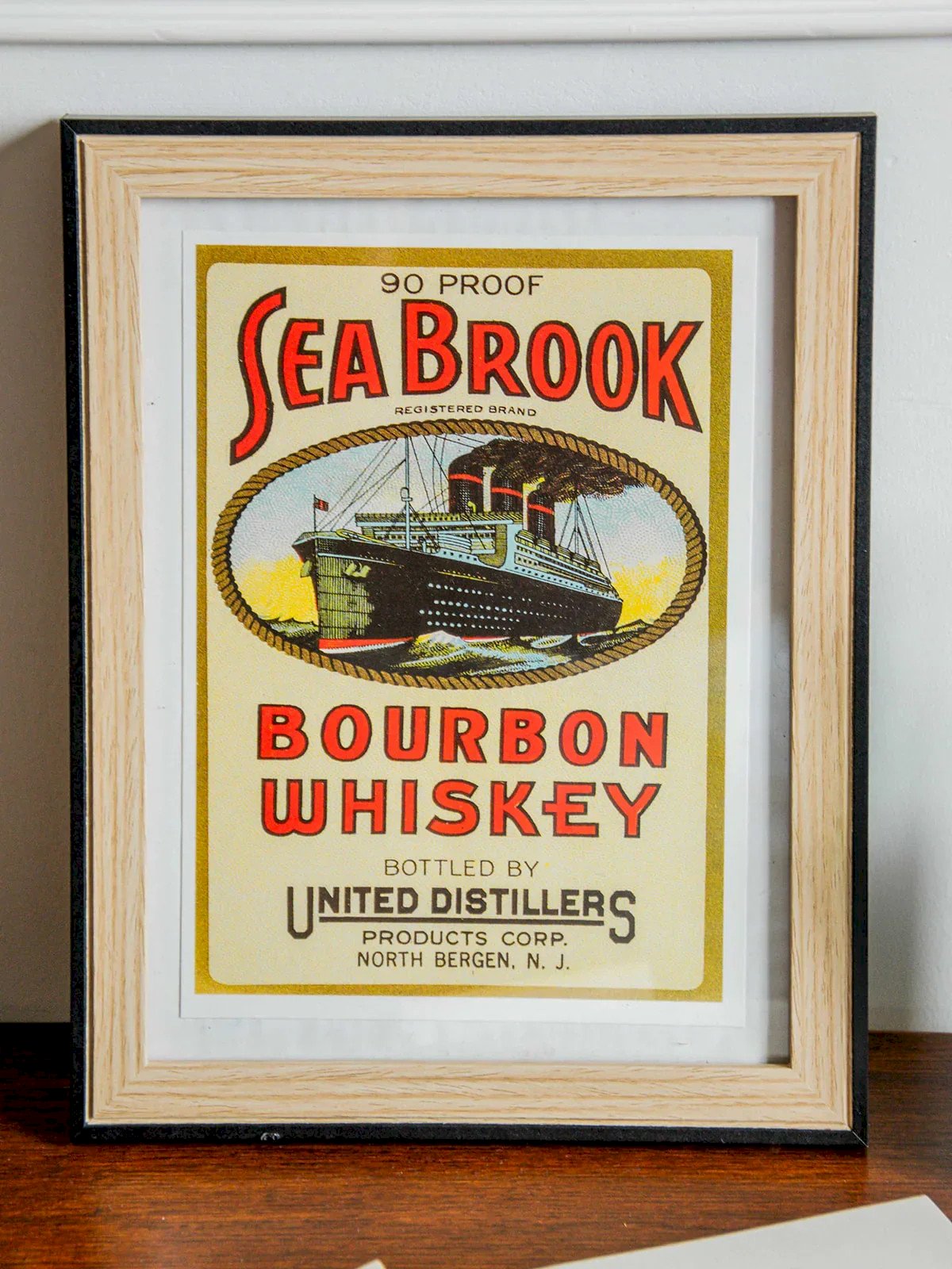 Discover this frame with its vintage poster "Sea Brook," an original advertisement for a whisky brand. The poster evokes the elegance of period advertising campaigns. Carefully framed, it will add a retro and quirky touch to your interior. Perfect for a kitchen, living room, or bar corner. A charming nod for whisky lovers and fans of vintage graphics. Length: 21 cm Height: 27 cm Depth: 1 cm Condition: Used: Item has been used. Item shows some superficial signs of wear... Used: Item has been used. Item shows some superficial signs of wear, fully operational and functioning correctly. It may be a demo model or an item returned to the store after a short period of use, with possible imperfections. Brand: Debongout Type: Vintage find Material: Paper, Wood Style: Contemporary
