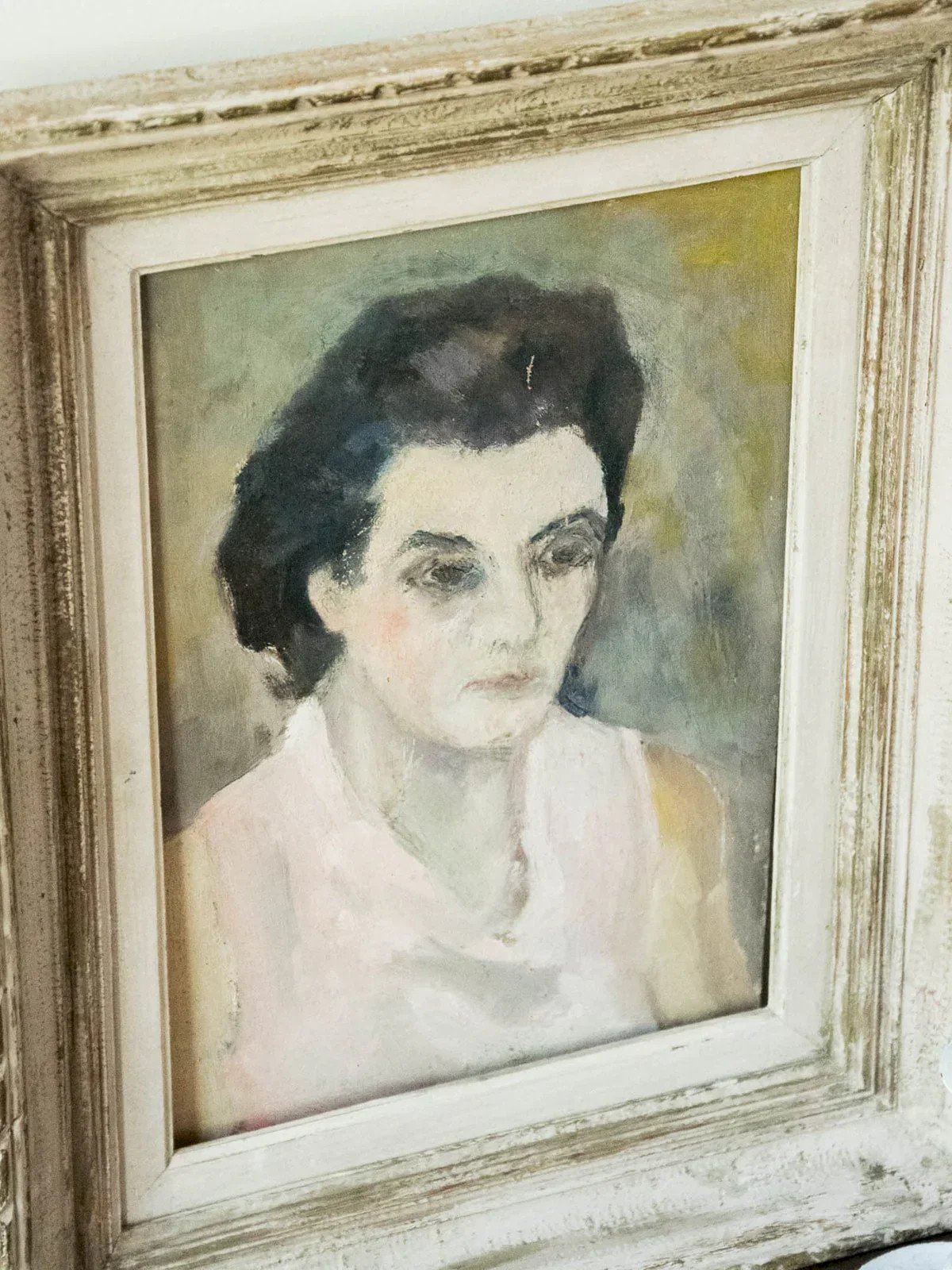 Discover this beautiful painting in a distressed white frame, perfect for enhancing your interior. This masterpiece features an old painting depicting a portrait of a woman, adding a touch of elegance and authenticity to your decor. Conveniently, it has a hook on the back for easy installation. An ideal choice for art lovers and vintage style enthusiasts. Width: 38 cm Height: 49 cm Depth: 5 cm Condition: Used: Item has been used. Item shows some signs of superficial wear... Used: Item has been used. Item shows some signs of superficial wear, fully operational and functioning correctly. It may be a demonstration model or an item returned to the store after a short period of use, with any imperfections. Brand: Debongout Type: Vintage product Material: Canvas, Wood Style: Contemporary