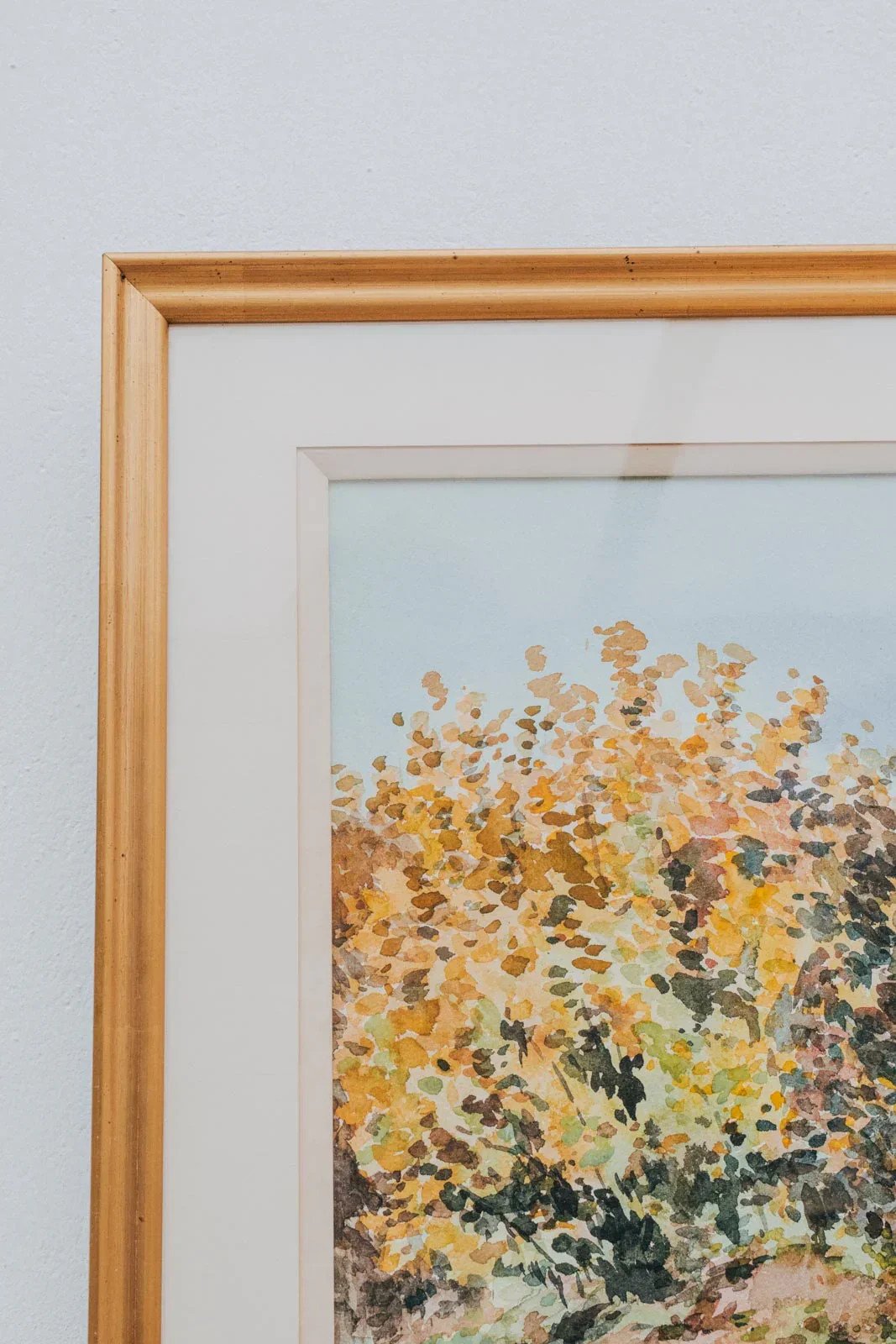 Discover this watercolor signed by Jean NOEL, dated November 1979, depicting a peaceful countryside landscape. The soft hues and controlled light give the scene a soothing atmosphere. It is presented in a gilded frame that delicately highlights the composition. A vintage piece full of charm to enrich a wall gallery. Ideal for lovers of sensitive painting and bucolic scenes. Length: 63 cm Width: 46 cm Condition: Used: An item that has been used. Item showing some superficial wear marks, ... Used: An item that has been used. Item showing some superficial wear marks, fully operational and functioning properly. It may be a demonstration model or a returned item after a short period of use. any potential imperfections. Brand: Debongout Type: Vintage product Material: Canvas Style: Contemporary