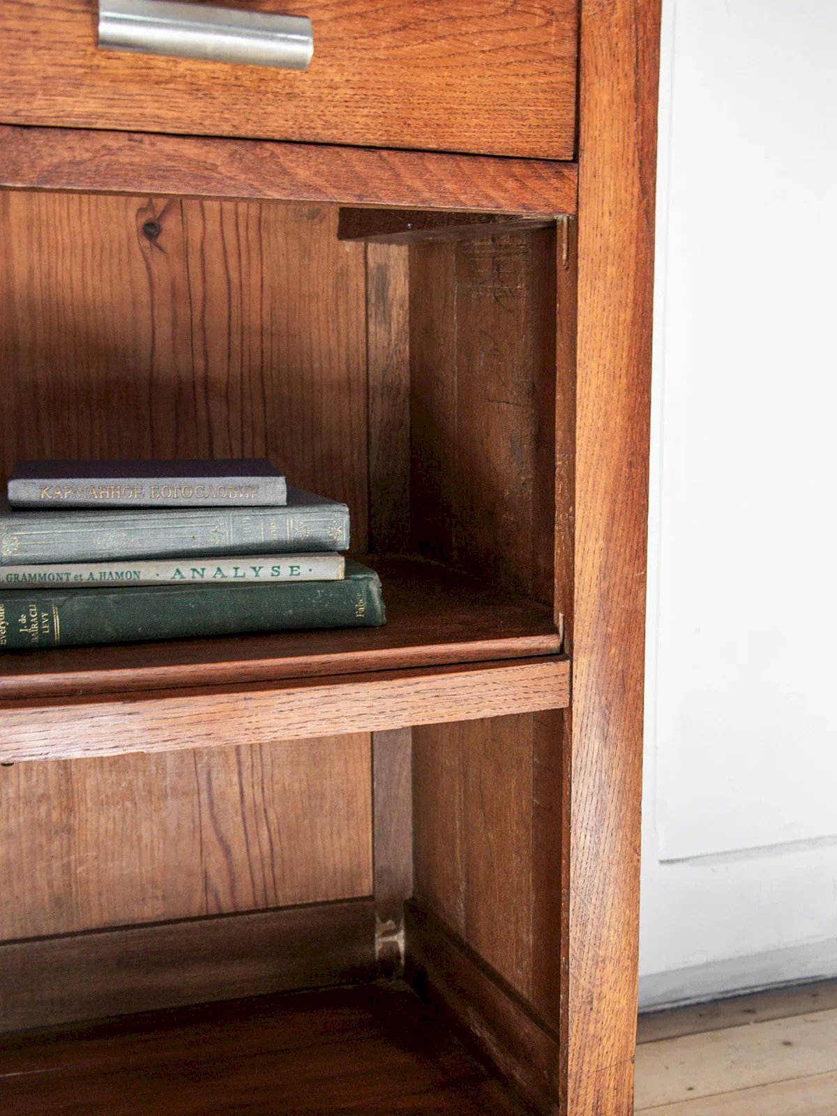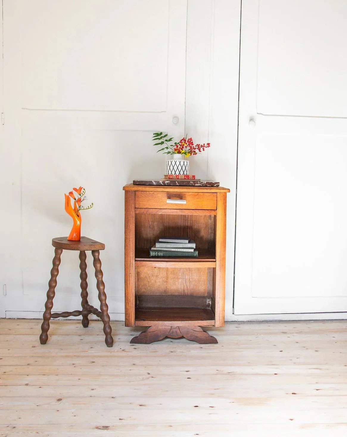 Add a lovely vintage touch to your interior with this wooden bedside table in Art Deco style, featuring a brown and white marble top. Although there is a crack on the marble, this piece remains unique, combining charm and functionality thanks to its drawer and shelf. With dimensions that make it perfectly fit into any corner of the room. Web exclusive, the meeting will take place at your home! Width: 48 cm Height: 75 cm Drawer height: 6 cm Depth: 35 cm Niche height: 28 cm A little history of the bedside table The term "bedside table" has referred since the Middle Ages to a small piece of furniture placed next to the bed. Initially designed as a support for a lamp or personal items, the bedside table has evolved over time to include drawers and shelves. Essential in the bedroom, it now combines functionality and design, adapting to all interior styles. Condition: Used: An item that has been used. Item showing some superficial signs of wear, ... Used: An item that has been used. Item showing some superficial signs of wear, fully operational and functioning correctly. It may be a display model or an item returned to the store after a short period of use. Any imperfections. Brand: Debongout Type: Vintage product Material: Wood, Marble Style: Country Custom: Bedside tables