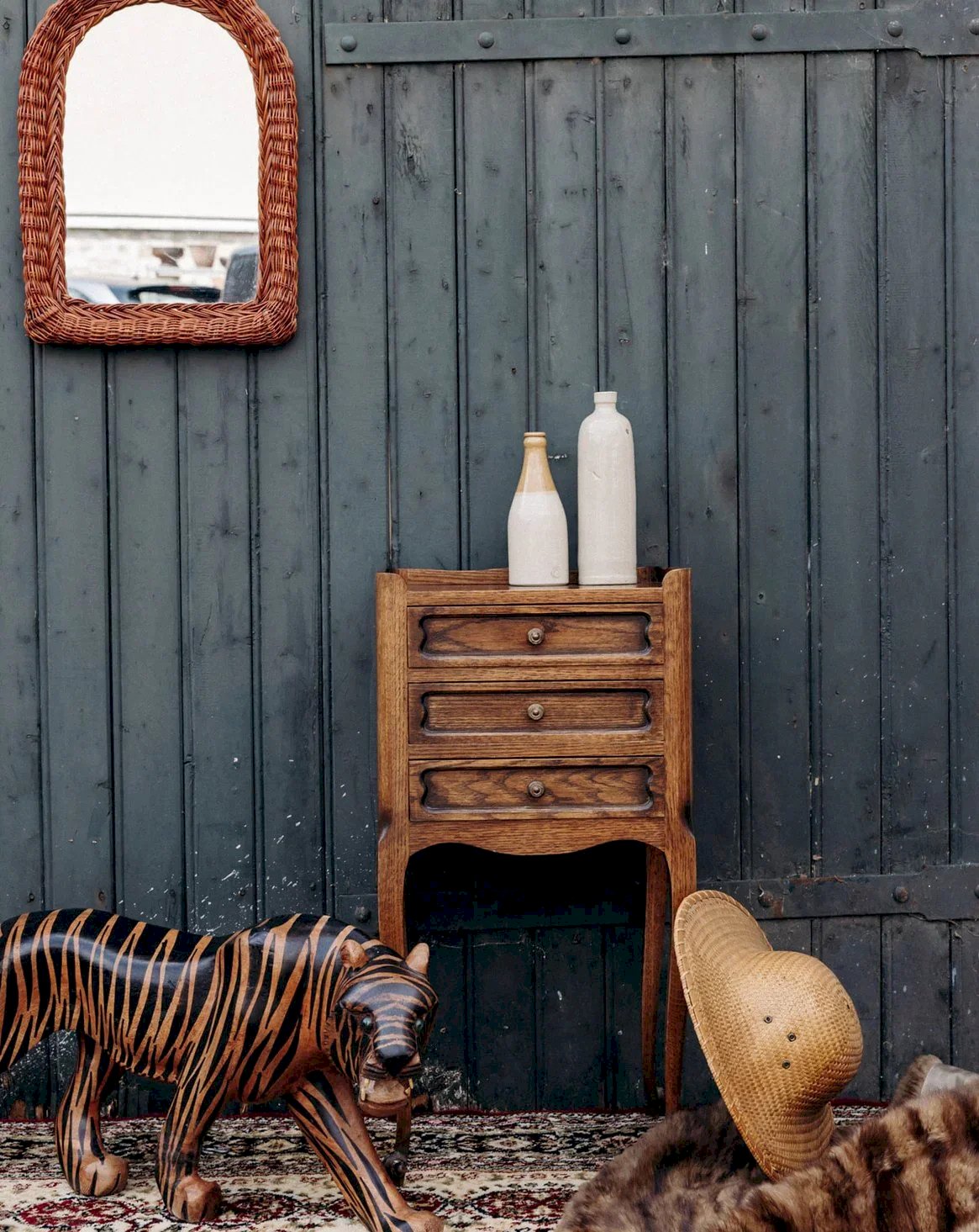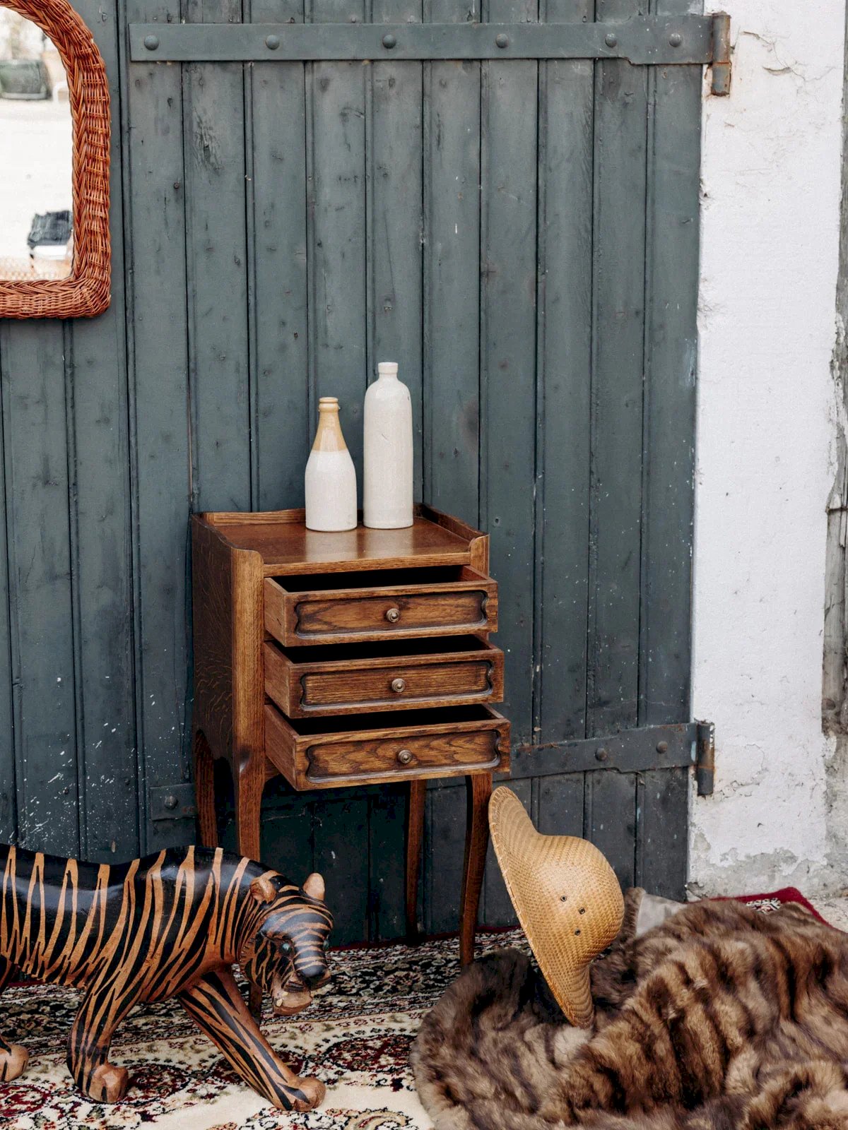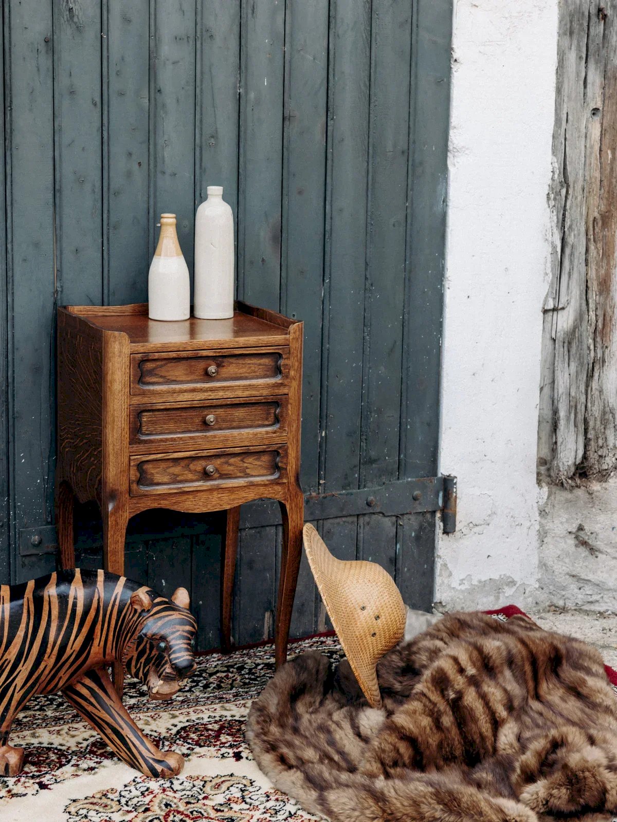 Add a touch of elegance to your bedroom with this wooden bedside table, featuring three practical drawers and beautiful metal handles. The markings on the top give it a unique character, while its curved legs highlight its refined design. Ideal for combining functionality and aesthetics, this piece of furniture integrates harmoniously into your space. Length: 36 cm Width: 31 cm Height: 70 cm Drawer height: 6 cm A short history of the bedside table The term "bedside table" has referred to a small piece of furniture placed next to the bed since the Middle Ages. Originally designed as a support for a lamp or personal items, the bedside table has evolved over time to include drawers and shelves. Essential in the bedroom, it now combines functionality and design, adapting to all interior styles. Condition: Used: Item has been used. Item may show some superficial signs of wear, ... Used: Item has been used. Item may show some superficial signs of wear, fully operational and functioning correctly. It may be a demonstration model or an item returned to the store after a short period of use. Any potential imperfections. Brand: Debongout Type: Vintage product Material: Wood, Brass Customized: Bedside tables Style: Country