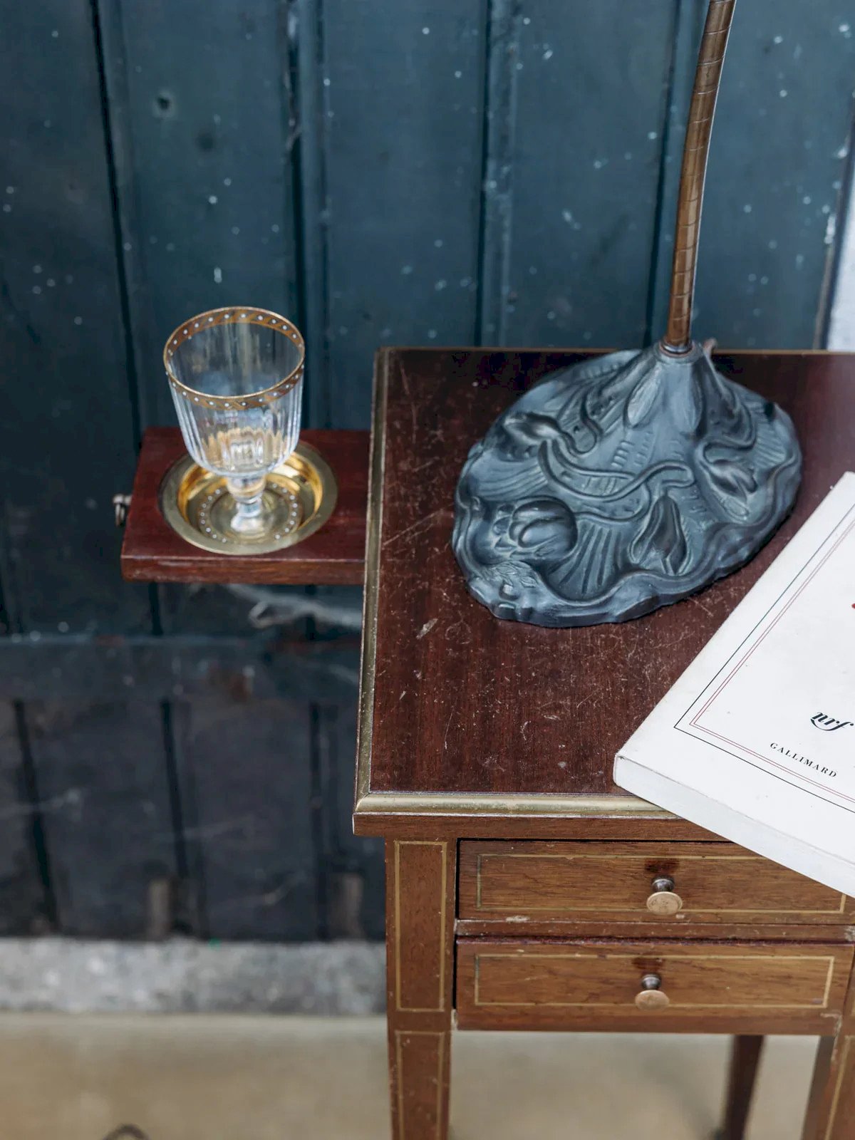 With its two drawers and discreet little flaps, this bedside table combines charm and practicality. Its brass details and fine gilding give it a refined look, while the marks of time on the wood remind us of its history. A piece full of character, ideal for a vintage-inspired bedroom. Length: 24 cm Width: 27.5 cm Height: 63 cm Drawer height: 4 cm A brief history of the bedside table The term "bedside table" has referred since the Middle Ages to a small piece of furniture placed next to the bed. Originally designed as a support for a lamp or personal items, the bedside table has evolved over time to include drawers and shelves. Essential in the bedroom, it now combines functionality and design, adapting to all interior styles. Condition:Used: Item that has been used. Item showing some signs of superficial wear, ...Used: Item that has been used. Item showing some signs of superficial wear, fully operational and working properly. It may be a demonstration model or an item returned to the store after a short period of use. any potential imperfections. Brand: Debongout Type: Vintage product Material: Wood, Brass Style: Country Custom: Bedside tables