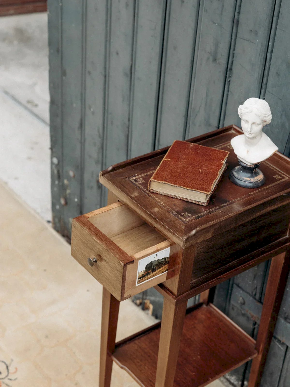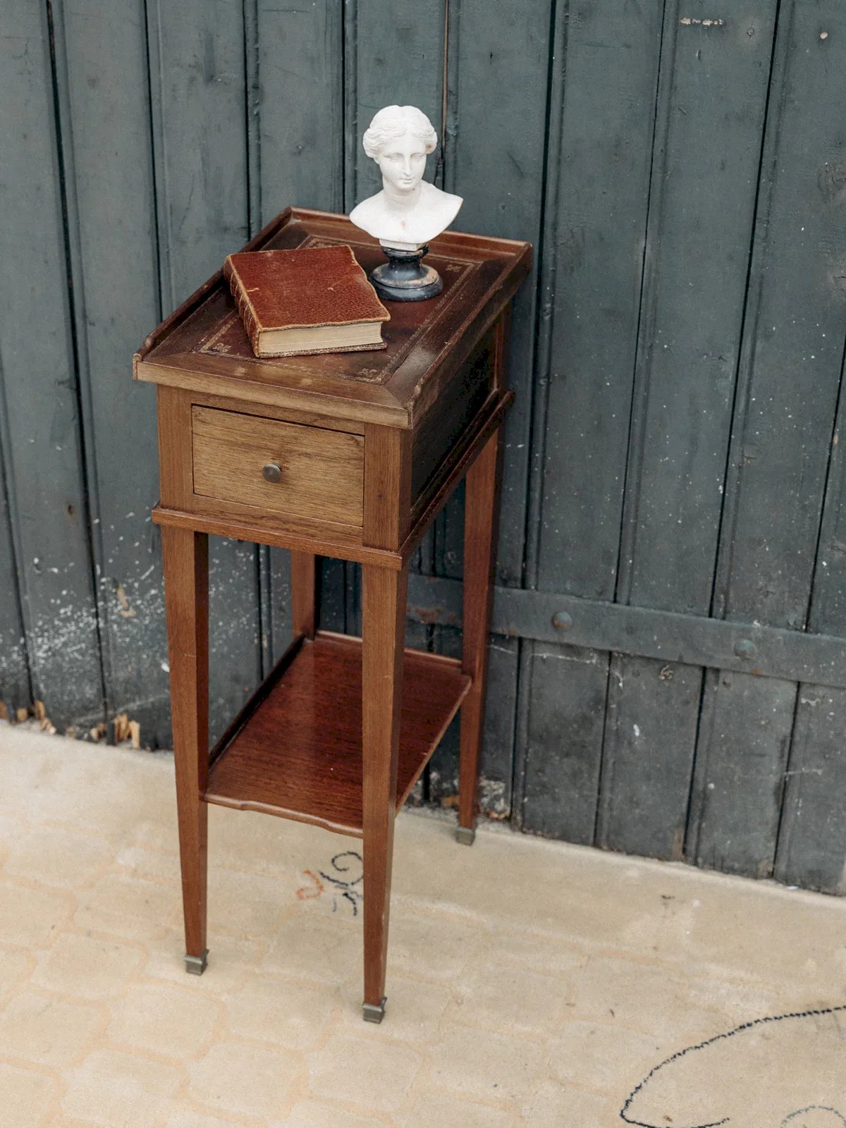 Discover this elegant wooden bedside table featuring a small leather tray for a refined touch. It offers a practical drawer as well as a small shelf to optimize your storage. Its simple and functional design perfectly adapts to all bedrooms. Add a warm and stylish note to your sleeping space with this versatile piece of furniture. An ideal companion to keep essentials close at hand. Length: 22 cm Width: 32 cm Height: 64 cm Drawer height: 6 cm Niche height: 29 cm A brief history of the bedside table The term "bedside table" has referred since the Middle Ages to a small piece of furniture placed next to the bed. Originally designed as a support for a lamp or personal items, the bedside table has evolved over time to include drawers and shelves. Essential in the bedroom, it now combines functionality and design, adapting to all interior styles. Condition: Used: An item that has been used. Item showing some signs of superficial wear, fully operational and functioning correctly. It may be a demonstration model or a returned item after a short period of use. Any imperfections. Brand: Debongout Type: Vintage product Material: Wood, Leather Customized: Bedside tables Style: Country