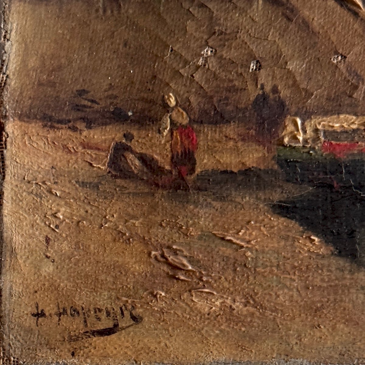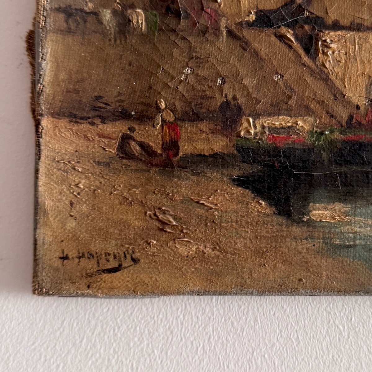 Oil on canvas depicting a boat at dock, late 19th century by H. Hapeyre A5763 This oil on canvas of fine quality is signed, but we do not have certainty about the name. We note that the work is very damaged, with paint peeling and losses in many places. Restoration is to be expected. Our photos allow you to appreciate the quality of the work. For the condition, please refer to the detailed photos. Feel free to zoom in. The photos are an integral part of the description. Dimensions: Height: 18 cm Width: 36 cm Thickness: 1.5 cm S: CQJ598Y9 P: 1624838 I remain at your disposal for any questions. Country of origin: France Authenticity: Unknown Weight: Unknown Type: Oil Height: 18 cm Length: cm Features: Signed, On canvas Width: 36 cm Theme: Seascape, Boat
