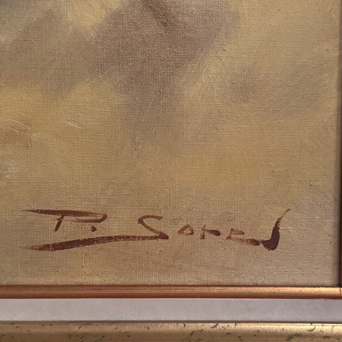 Oil on canvas still life with sunflowers by P. Sorrol 20th A5754 This still life with sunflowers has a nice frame, it is in generally good condition, with minimal paint losses. Our photos allow you to appreciate the quality of the work. For the condition, please refer to the detailed photos. Feel free to zoom in. The photos are an integral part of the description. Dimensions: - Frame Height: 95.5 cm Width: 114.5 cm Thickness: 5.5 cm - Artwork Height: 79.5 cm Width: 98.8 cm S: 1A5HUE16 I remain at your disposal for any questions. Authenticity: Unknown Weight: Unknown Type: Oil Height: 95.5 cm Style: Not specified Genre: Unknown Length: cm Features: Framed, Signed, On canvas Width: 114.5 cm Theme: Still life