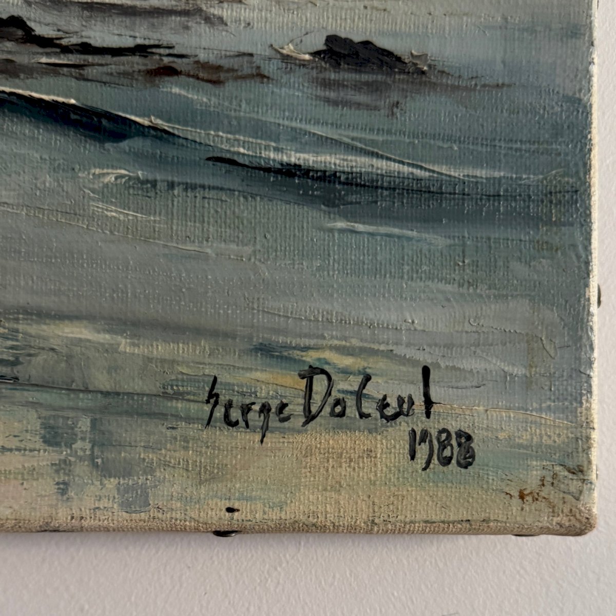 Oil on canvas surreal landscape by Serge Doceul 1988 Complicity A5839 The artwork is in generally good condition. Serge Doceul, Breton artist born in 1954. The light and the strength of his homeland are the source of his inspiration. His work has been featured in international exhibitions in the USA at embassies, in Germany, and in London with the Royal Society of Marine Artists. Our photos allow you to appreciate the quality of the artwork. For the condition, please refer to the detailed photos. Feel free to zoom in. The photos are an integral part of the description. Dimensions: Height: 33 cm Width: 41 cm Thickness: 1.5 cm A: ACDJL5V67R P: 1676050 I remain at your disposal for any questions. Authenticity: Unknown Weight: Unknown Height: 33 cm Length: cm Features: Signed, On canvas Width: 41 cm Artist: Serge Doceul Type: Oil Country of origin: France Style: Unspecified Genre: Unknown Theme: Coastal landscape, Boat