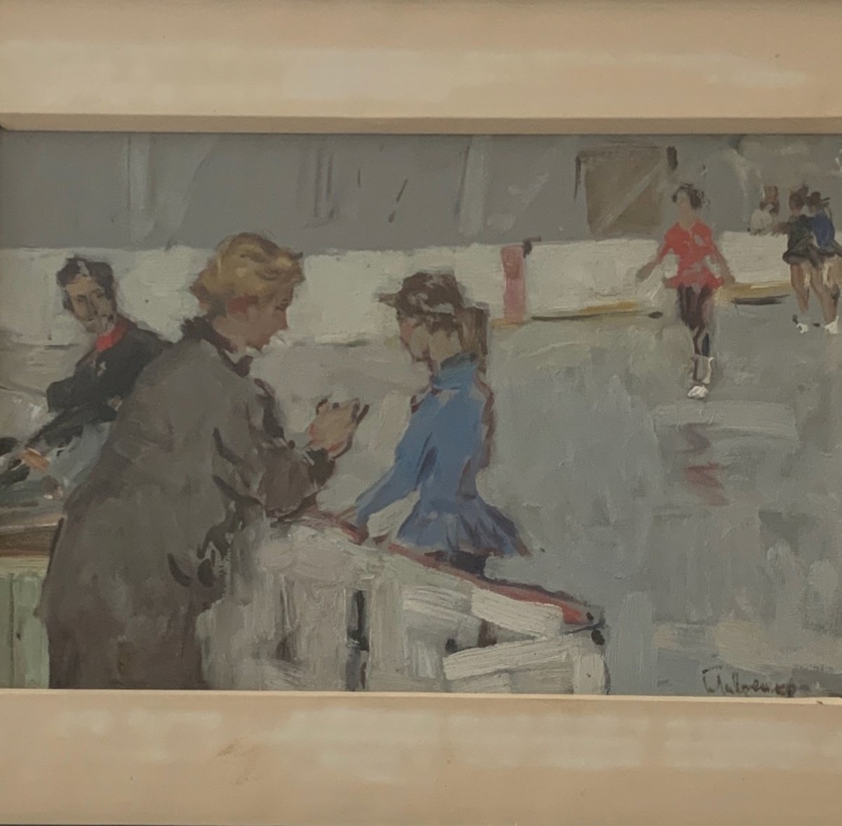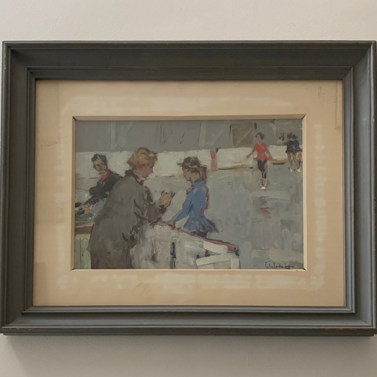 Oil on Isorel 1960 depicting ice skaters and judges A5869 This oil on Isorel is of good quality, the colors are nice. We are truly immersed in the 1960s. It resembles a work by Domergue. The whole piece is of fine craftsmanship. The artwork is in good condition, with a few stains on the matting. Our photos allow you to appreciate the quality of the work. For the condition, please examine the photos closely. Do not hesitate to zoom in. The photos are an integral part of the description. Dimensions: - Frame Height: 38.5 cm Width: 49 cm Thickness: 3.5 cm - Artwork Height: 20 cm Width: 30.5 cm A: KBWXBUGWIQ P: 1717111 I remain at your disposal for any questions. Authenticity: Unknown Weight: Unknown Type: Oil Country of origin: Metropolitan France Height: 38.5 cm Style: Unspecified Genre: Unknown Length: cm Features: Framed, Signed, On wood Width: 49 cm Theme: Character