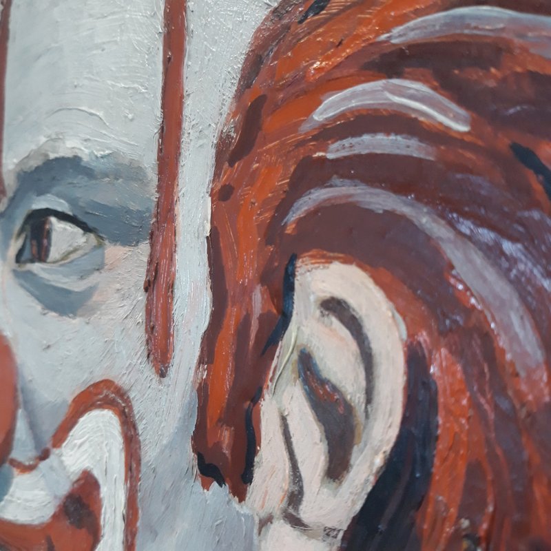 Very bright painting, with vivid colors featuring this mischievous-looking clown!